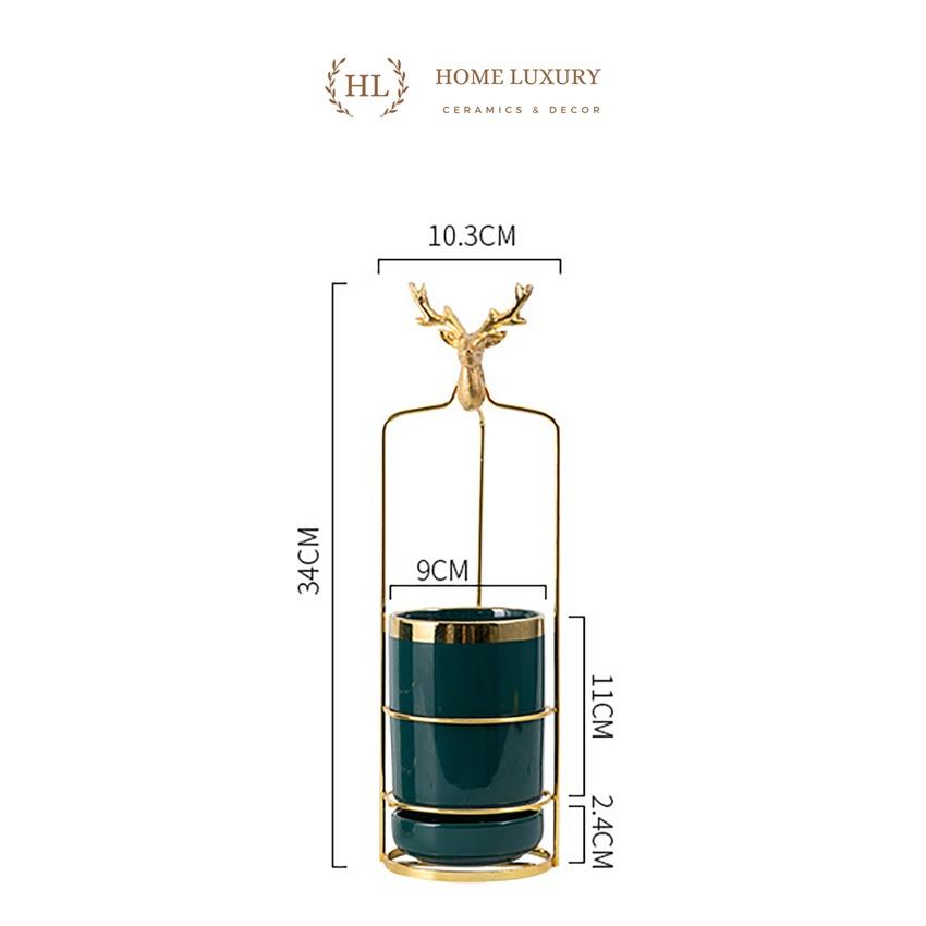 ✨ỐNG CẮM ĐŨA ĐƠN | ỐNG ĐŨA 1 SỨ XANH NGỌC BÍCH | GIỎ CẮM ĐŨA SỨ HALLEY HOME LUXURY | LẴNG SỨ HƯƠU MẠ VÀNG