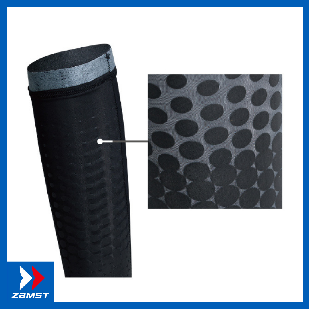 - Draping with pursuit of fit and a freely cut design Supporting the entire calf with a design to gradually weaken the pressure from the ankle to the calf. By compressing the entire calf, unnecessary muscle vibration resulting to fatigue is reduced.