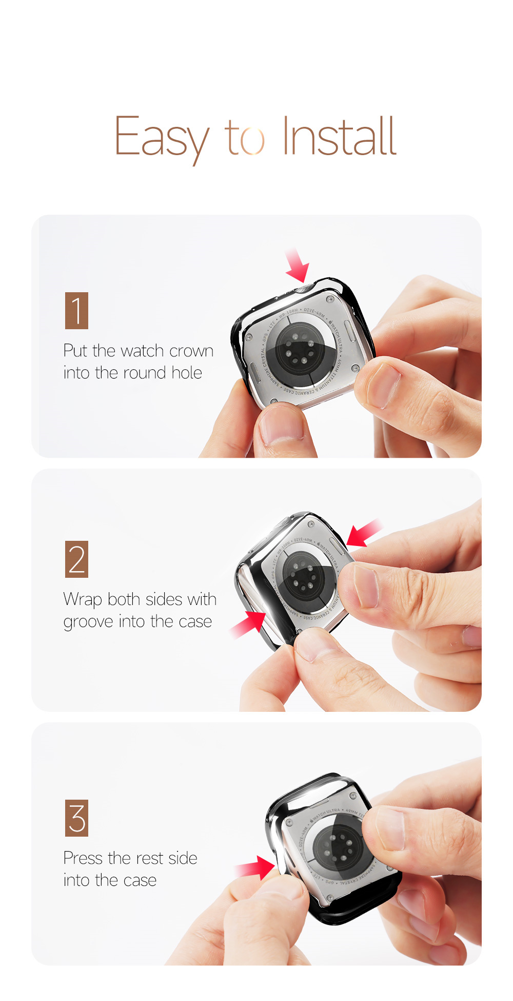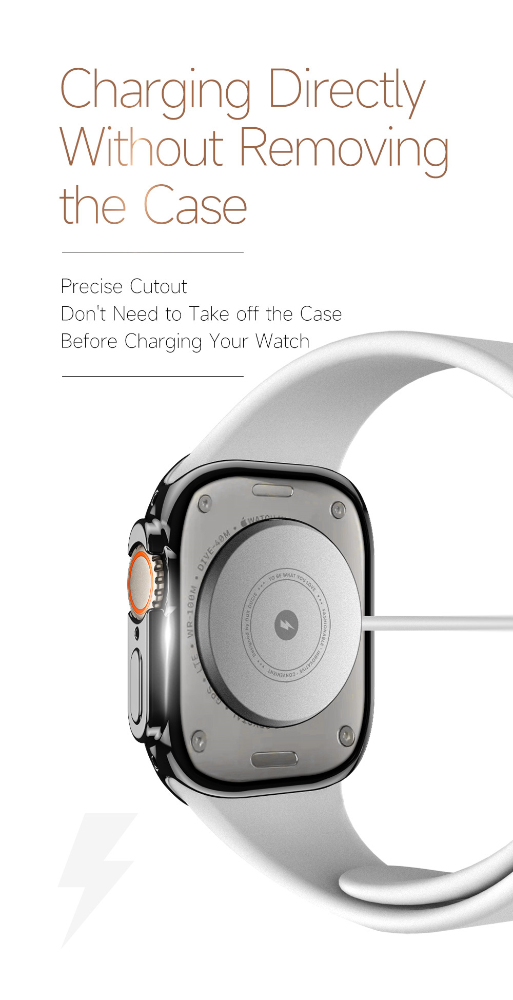 - Nó được thiết kế với các đường cắt chính xác để đảm bảo truy cập vào tất cả các nút điều khiển, nút, cảm biến và chức năng. Thật dễ dàng để đeo và tháo ra, không cần phải tháo vỏ này khi bạn sạc đồng hồ