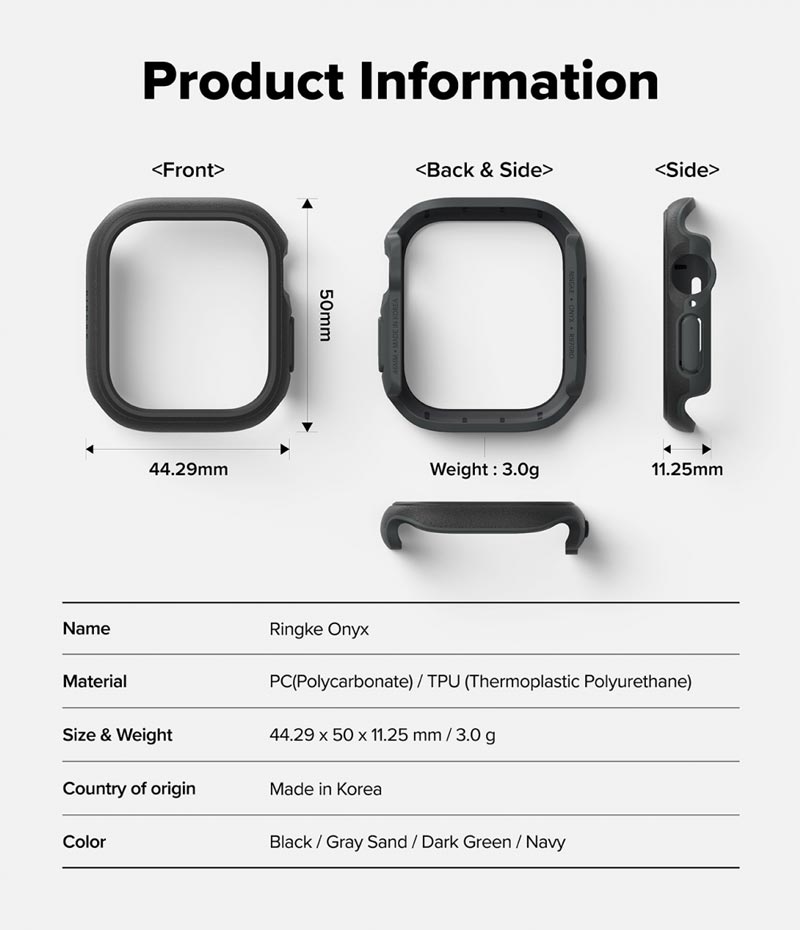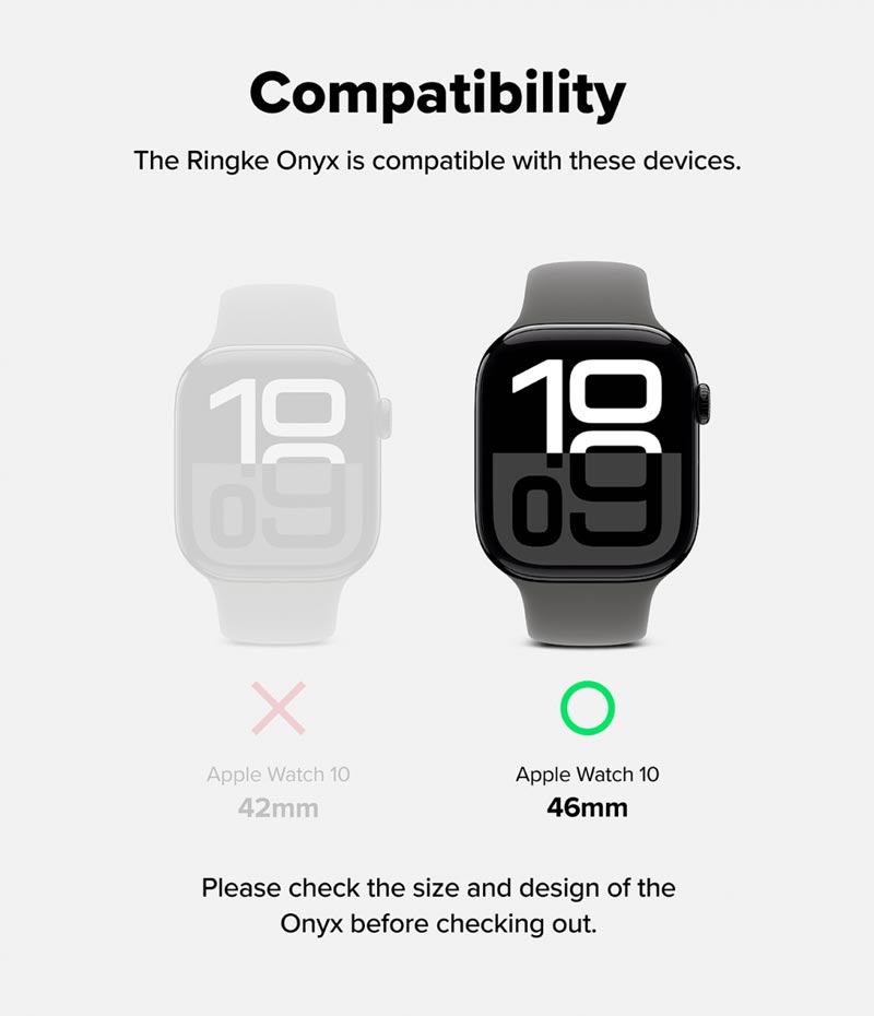 - Ốp Apple Watch 10 Ringke Onyx có độ mỏng chỉ 2 mm lý tưởng để bảo vệ thiết bị và vừa vặn với cổ tay của bạn.