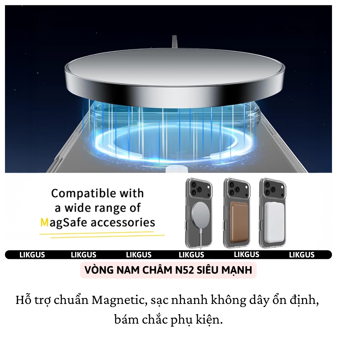 Ốp Lưng Trong Suốt Từ Tính Likgus Magnetic N52 Cho iPhone17 Series (Pro / Pro Max / Air)
