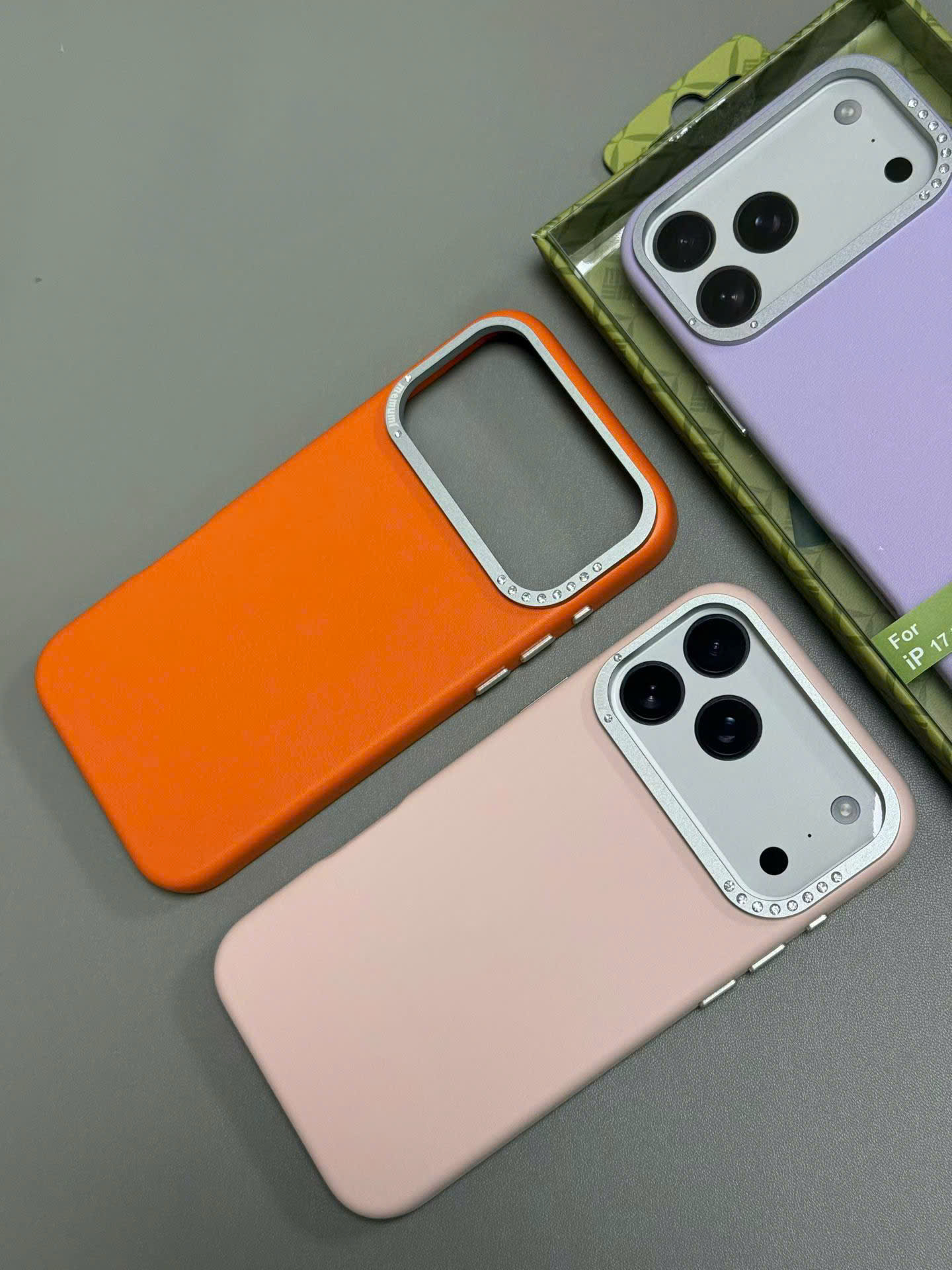 Ốp lưng da PU viền cam đá cho iPhone 17 Pro Max hiệu Memumi Diamond With Mag safe • Chất liệu da PU cao cấp, mềm mại và sang trọng khi cầm nắm. • Vòng