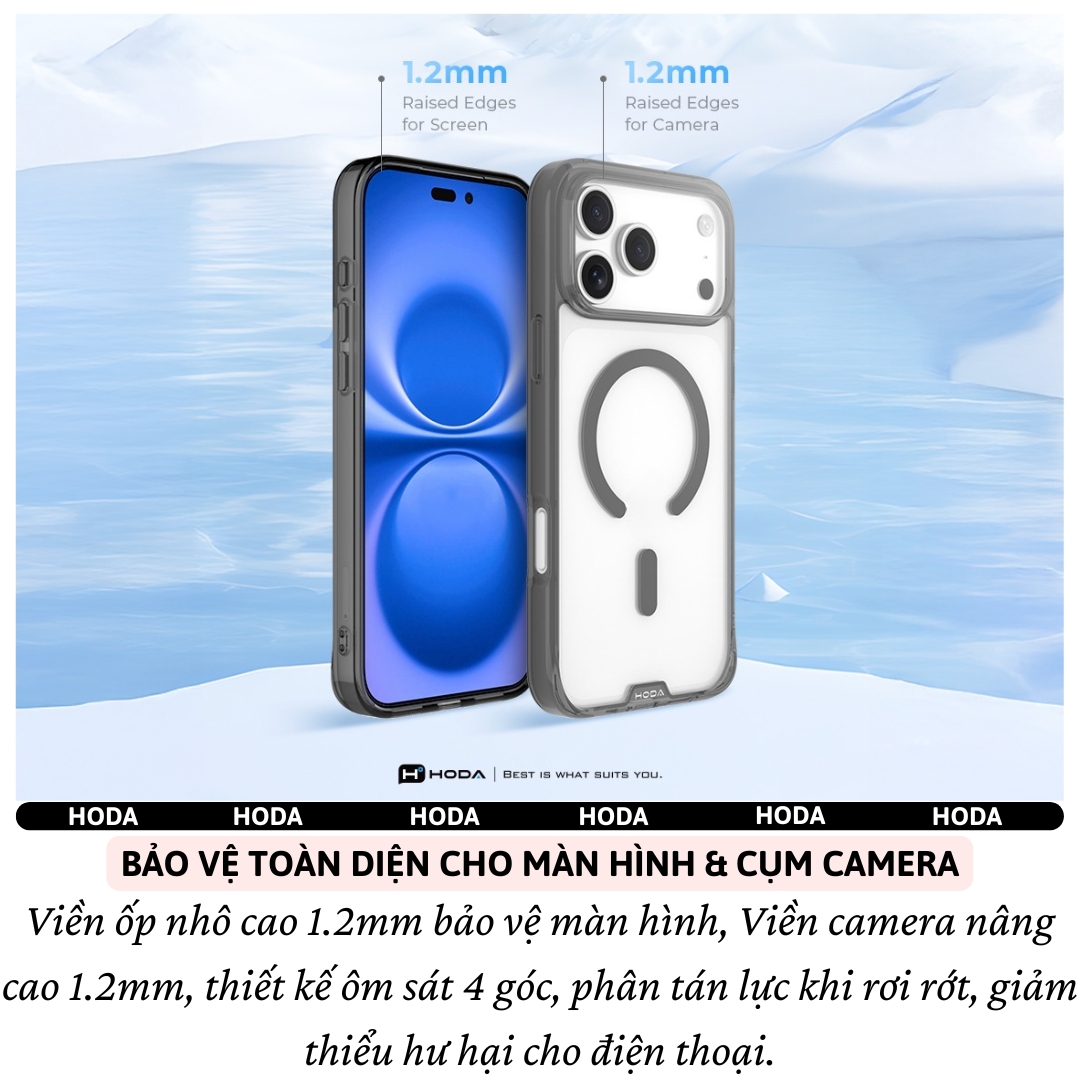 ỐP LƯNG KÍNH CƯỜNG LỰC TỪ TÍNH HODA CHO IPHONE 16 PRO / 16 PRO MAX / 17 AIR / 17 PRO / 17 PRO MAX Siêu Bền – Siêu Trong – Bảo Vệ Toàn