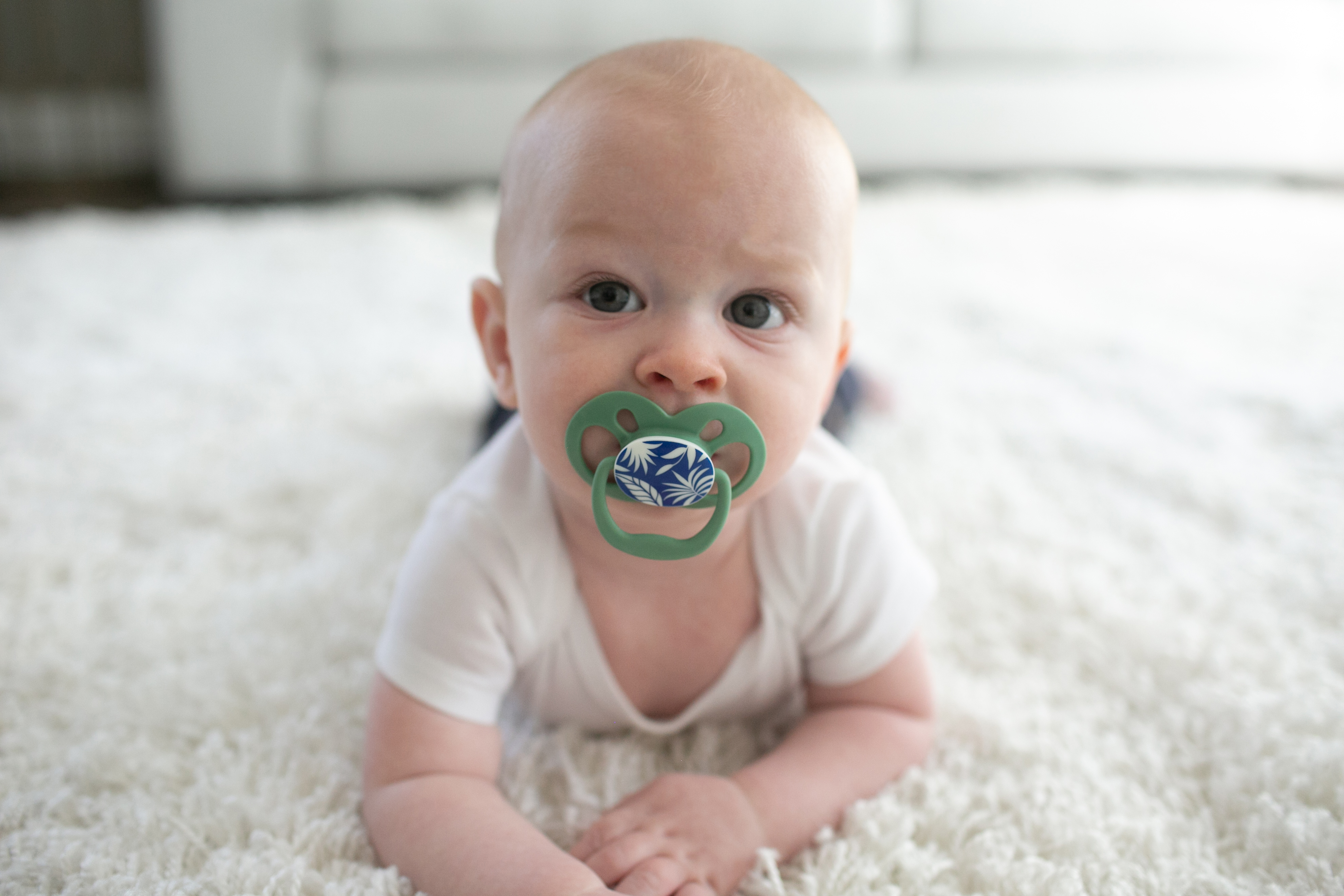 - Ty ngậm sẽ phát sáng trong bóng tối giúp mẹ dễ dàng tìm thấy khi cần