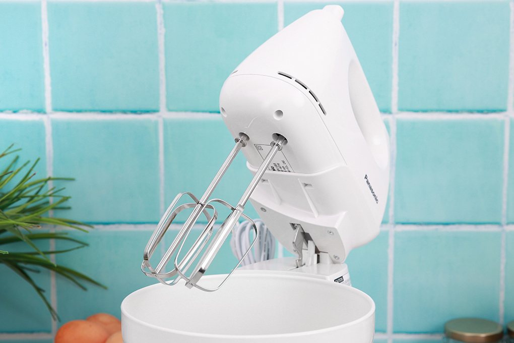 Máy đánh trứng Panasonic màu trắng tươi sáng, kết cấu chắc chắn, tinh xảo, tô điểm cho căn bếp gia đình thêm sang trọng