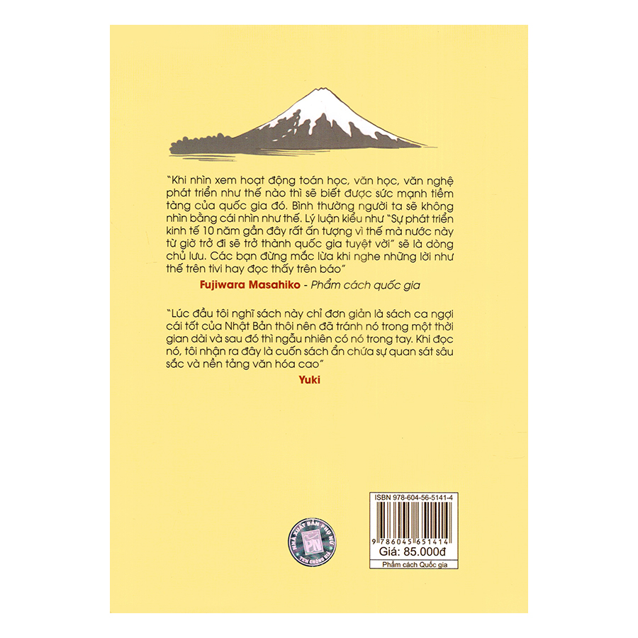 PHẨM CÁCH QUỐC GIA gồm 7 chương: Giới hạn của tinh thần lý tính cận đại; Nếu chỉ có “logic” thế giới sẽ phá sản; Hoài nghi tự do bình đẳng, dân chủ; Nhật Bản, quốc gia của “cảm xúc và hình thức”; Phục hồi tinh thần võ sĩ đạo; Tại sao “tình cảm và hình thức lại quan trọng; Phẩm cách quốc gia.