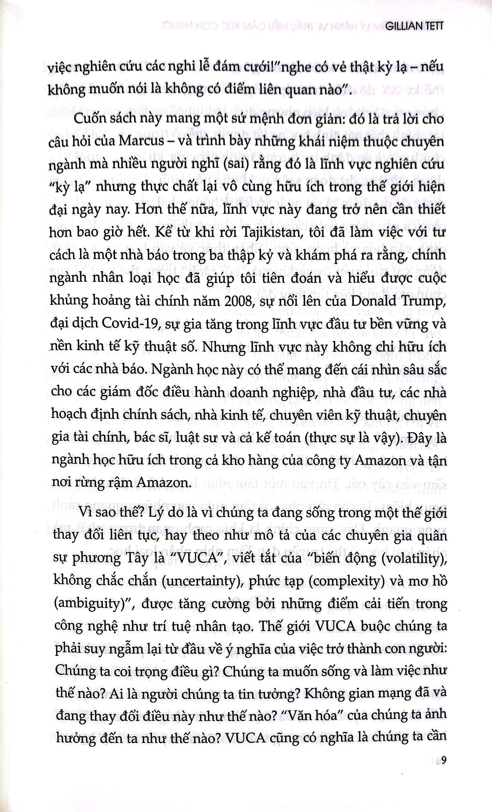 Cuốn sách được chia thành ba phần, lặp lại ba nguyên tắc đã nêu trên: nhu cầu biến “lạ thành quen”; biến “quen thành lạ”; và lắng nghe sự im lặng của xã hội. Để trình bày điểm đầu tiên, tôi sẽ kể câu chuyện về Intel và Nestle, cùng với câu chuyện về Covid-19 và Ebola; trong phần thứ hai, tác giả giải thích cách thức mà nhân loại học có thể giúp giải thích về General Motors và một loạt các lĩnh vực tiêu dùng, từ thức ăn cho chó, nhà trông trẻ cho đến tiền hưu trí; trong phần thứ ba, tôi áp dụng các nguyên tắc đã nêu để tìm hiểu về ảnh hưởng của sự im lặng xã hội đến nền kinh tế công nghệ, ngành nghề liên quan đến kỹ thuật số và sự nổi lên của phong trào bền vững.