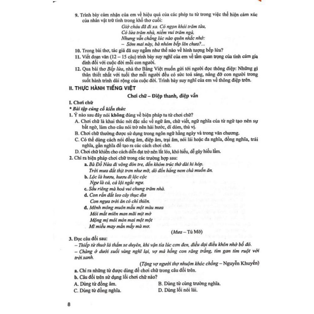 Đặc biệt, phần hệ thống hoá các thể loại và kiểu văn bản và các kiến thức cơ bản phẩn tiếng Việt bằng sơ đồ, biểu bảng ở cuối sách sẽ giúp các em học sinh tổng hợp, hệ thống được các kiến thức đã học và ghi nhớ một cách dễ dàng nhất.