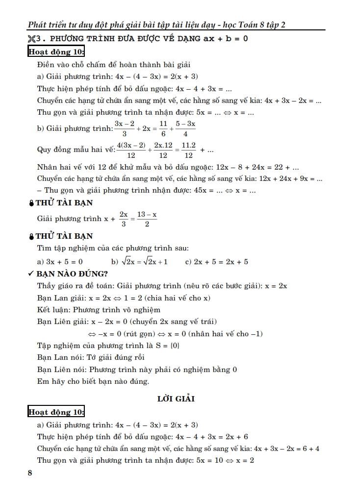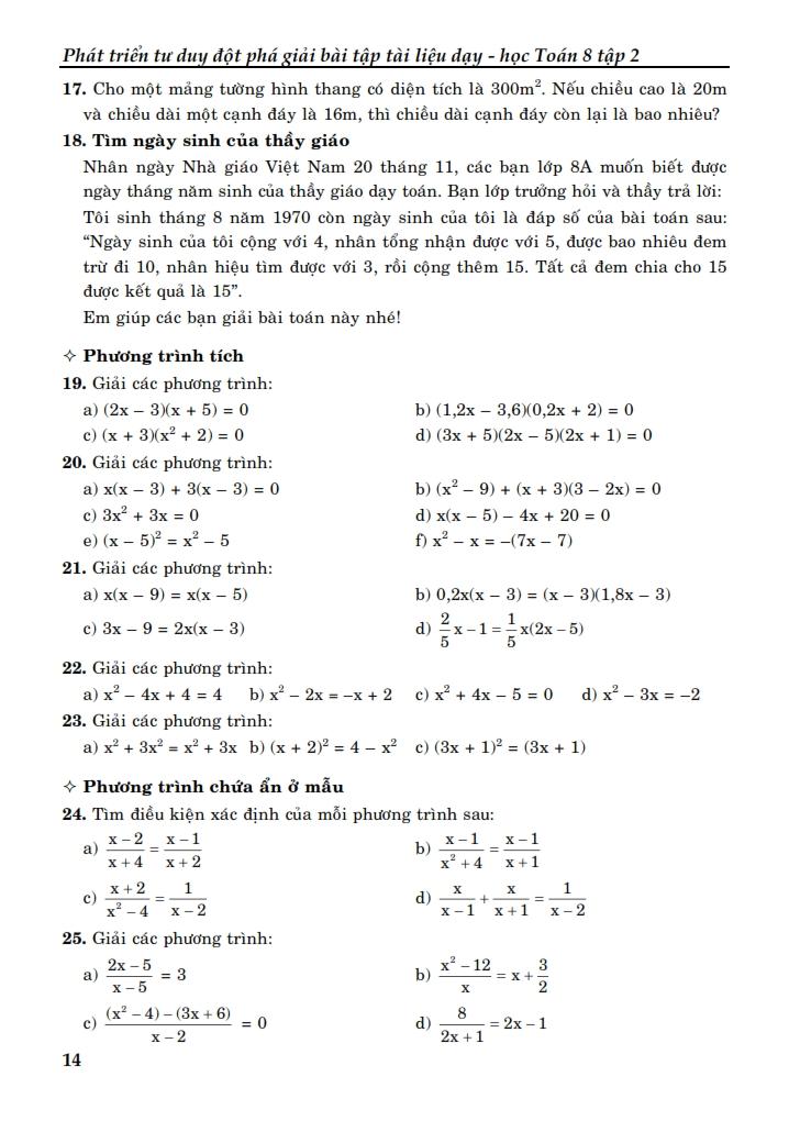 Quyển sách Phát Triển Tư Duy Đột Phá Giải Bài Tập Tài Liệu Dạy Học Toán 8 Tập 2 sẽ giúp học sinh tự rèn luyện củng cố, bồi dưỡng và kiểm tra vốn kiến thức toán của bản thân.