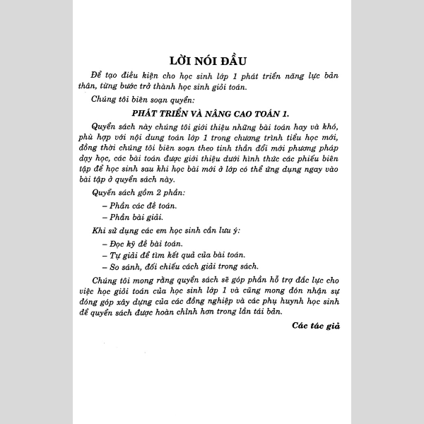 “PHÁT TRIỂN VÀ NÂNG CAO TOÁN 1” được biên soạn nhằm giúp học sinh phát triển và nâng cao kiến thức về môn Toán. Cuốn sách là tài liệu tham khảo cho giáo viên cũng như các bậc phụ huynh trong quá trình hướng dẫn học sinh làm thêm các bài tập.