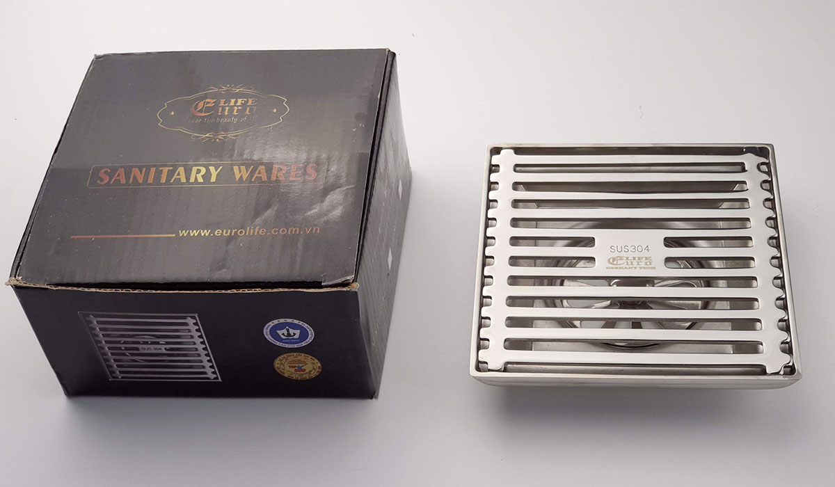 Mua tại TiktokPhễu thu sàn - thoát sàn chống hôi Inox SUS 304, 10cm x 10cm Eurolife EL-HG04 ( Trắng bạc) ️ Thương hiệu Eurolife - Việt Nam ️ Chất liệu: Inox SUS 304, độ dày 2.5mm. ️ Kích thước: 10 x 10cm - EL-HG04 và 12 x 12cm- EL-HG03 ️ Phù hợp các loại ống : từ 36mm tới 90mm: EL-HG04 và từ 54mm tới 90mm: EL-HG03 (Vui lòng xem bản vẽ kỹ thuật để biết thêm chi tiết) ️ Sản xuất tại Việt Nam ️ Bảo hành 2 năm ️ CHI TIẾT SẢN PHẨM