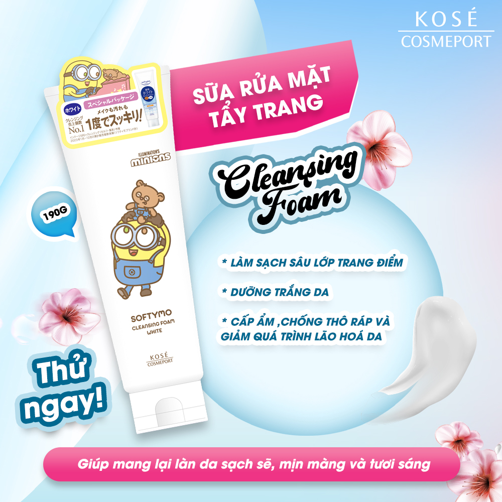 ✨Phiên Bản Giới Hạn Minions Sữa Rửa Mặt Tẩy Trang Dưỡng Trắng Da Kose Softymo Cleansing Foam 190 G