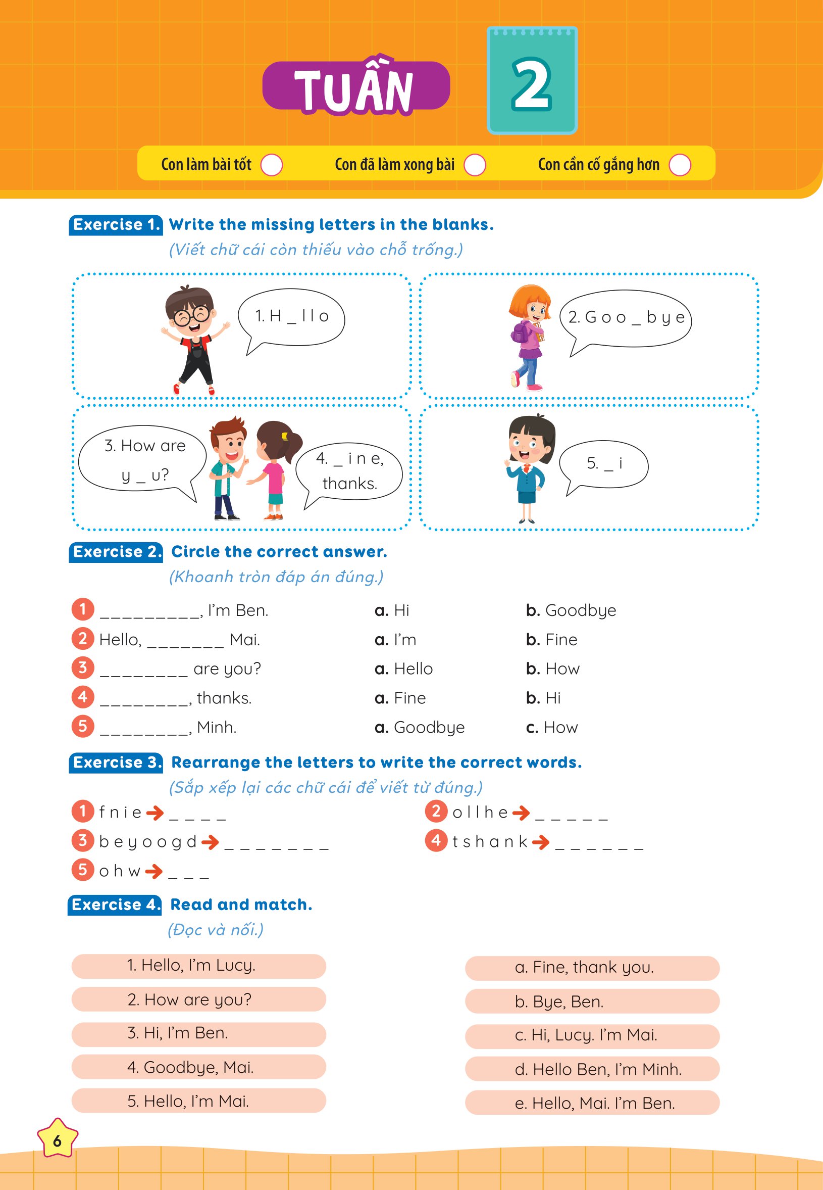 Bộ sách Phiếu bài tập cuối tuần Tiếng Anh 3 chính là tâm huyết của các thầy cô với nhiều năm kinh nghiệm giảng dạy, mong muốn các con rèn luyện và nắm vững kiến thức, tự tin bước tiếp trên con đường học tập.