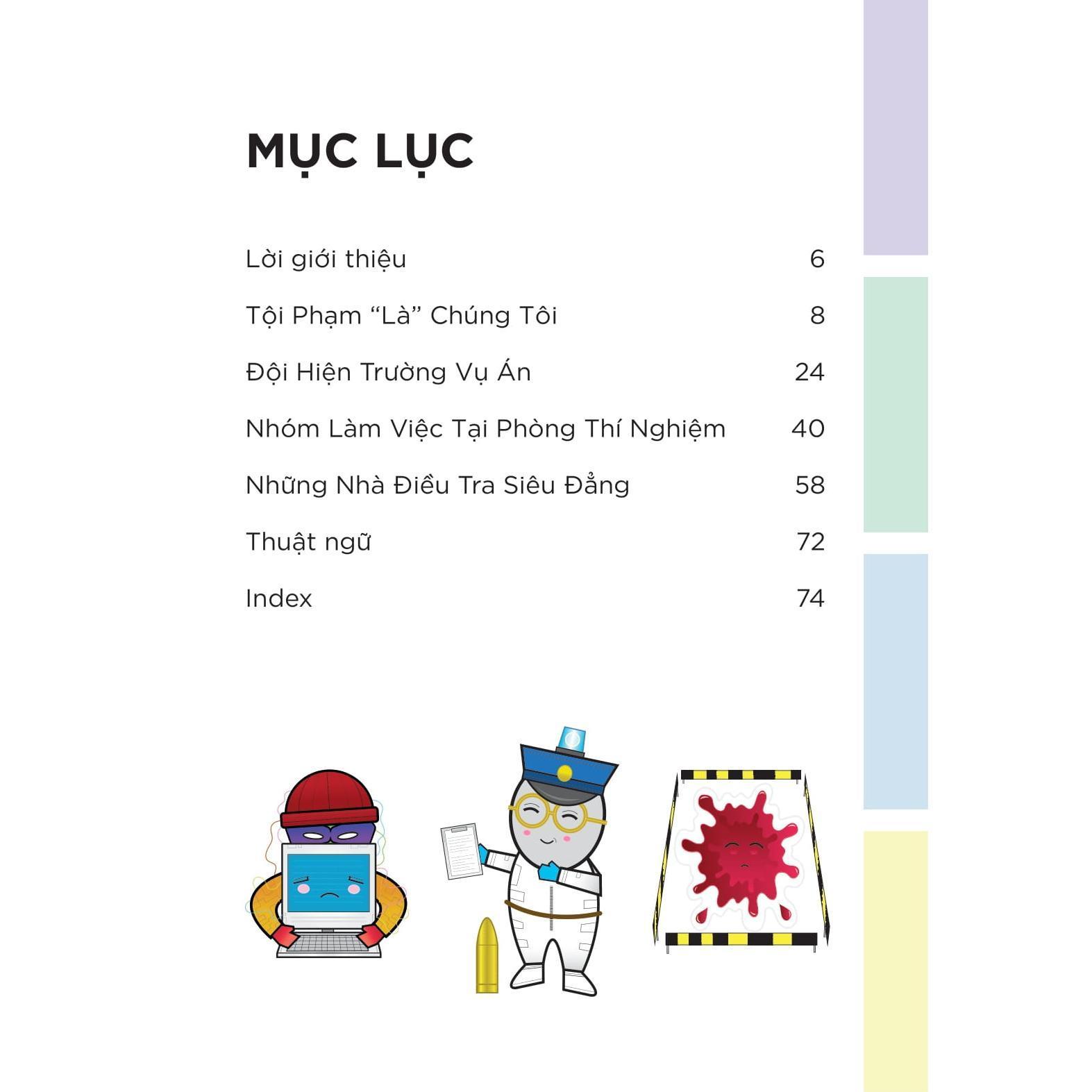 Phiêu Lưu Cùng STEM - Điều Tra Hiện Trường - Những Khám Phá Ly Kỳ Cuốn sách này sẽ đưa các bạn vào một cuộc phiêu lưu khám phá thế giới khoa học pháp y đầy hấp dẫn. Từ việc thu thập DNA, phân tích các vết máu cho đến việc điều tra hiện trường vụ cháy, các bạn sẽ được học hỏi về những kỹ thuật tiên tiến mà các nhà khoa học sử dụng để phá án. Với những hình ảnh sinh động và cách giải thích đơn giản, dễ hiểu, “Điều tra hiện trường – Những khám phá ly kỳ” giúp bạn hiểu rõ hơn về công việc của các nhà điều tra và tầm quan trọng của việc tìm ra sự thật. Bộ sách “Phiêu lưu cùng STEM” sẽ đưa bạn vào một hành trình khám phá đầy bất ngờ và thú vị! STEM không còn là thứ khô khan, xa lạ – mà ngược lại, gần gũi, dễ hiểu và… có phần đáng yêu nữa chứ! Bộ sách này không chỉ truyền cảm hứng yêu khoa học mà còn mở ra cả một thế giới sáng tạo dành cho bạn. Các tựa trong bộ: