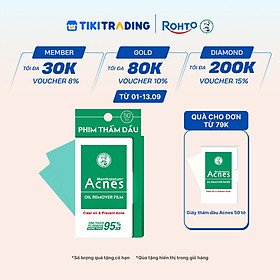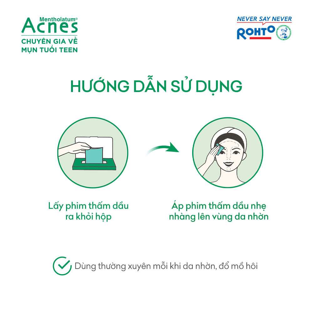 Mua tại TiktokPhim thấm dầu Acnes Oil Remover Film 50 Tờ Phim thấm dầu Acnes Oil Remover Film được nghiên cứu và phát triển giúp thấm hút hơn 95% chất nhờn dư chỉ với 1 lần chạm, phù hợp cho mọi loại da. Phim thấm dầu có kết cấu dai, mềm mại, mịn màng và bao bì nhỏ gọn nên rất tiện lợi để mang theo sử dụng trong ngày. Phim thấm dầu của Acnes có những ưu điểm nổi trội hơn so với các loại giấy/phim thấm dầu thông thường: kiểm soát nhờn vượt trội, ngăn ngừa mụn mới, giữ da sạch, thoáng, duy trì độ ẩm cần thiết và đặc biệt không làm trôi lớp trang điểm.