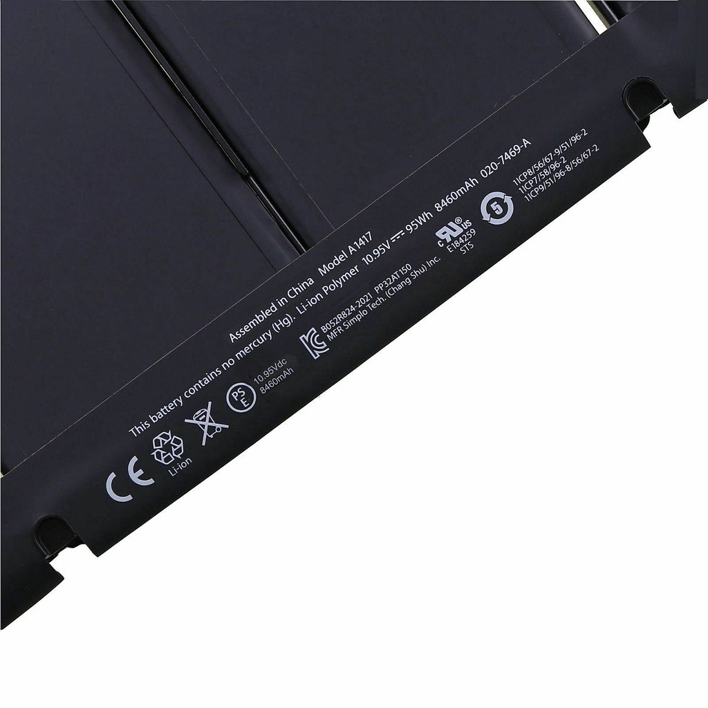 Màu: đen Tương thích: A1417 Mc975ll/a Mc976ll/a Md831ll/A Loại: Pin Li-Ion có thể sạc lại Điện áp: 10.95V Loại: AC / Tiêu chuẩn Dung lượng pin: 95Wh