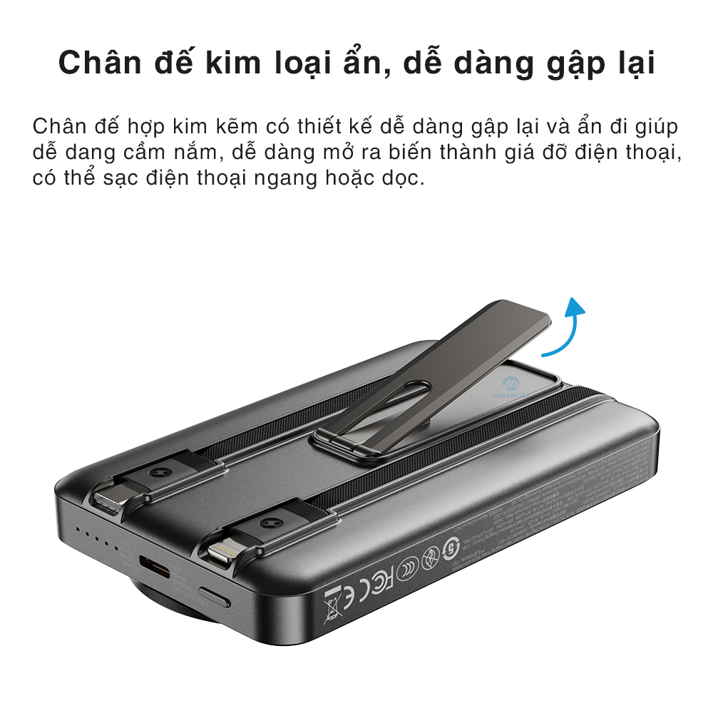 Pin Dự Phòng Mazer Smallest MagS 10,000mAh+USB-C PD20W - Bộ sạc di động không dây từ tính Mazer MagAir16 (MagAir) - Chân đế có thể gập lại và mở ra dễ dàng. - Sạc không