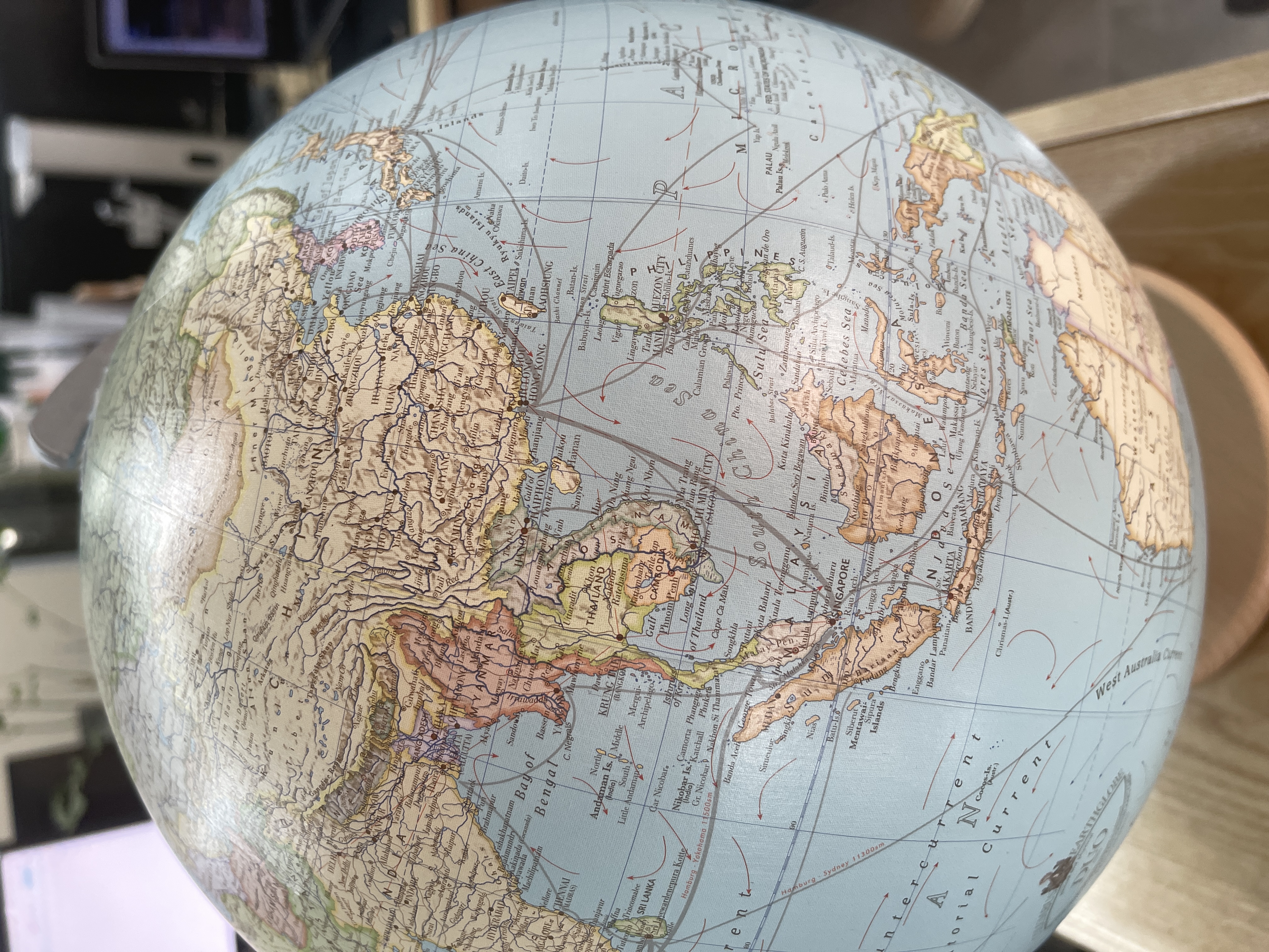 Trái Đất không đứng yên .Quả địa cầu mô hình thu nhỏ của Trái Đất