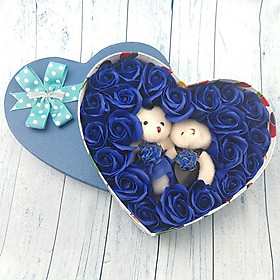 Hoa hồng sáp là hoa làm từ sáp xà phòng. Khác với các loại hoa giả khác, hoa sáp đẹp như hoa thật, giữ được hình dáng và màu sắc được lâu. Bên cạnh đó còn có mùi hương, giữ được tới 1 - 2 năm. Hộp hoa hồng sáp màu xanh, hình trái tim có 2 gấu là sản phẩm độc đáo mà bạn có thể dành tặng cho người thương yêu của mình. Hộp hoa gồm 18 -22 bông (số lượng hoa ngẫu nhiên) được xếp chặt vào hộp, kèm 2 gấu rất dễ thương. Hộp bên ngoài là hộp quà, kích thước khoảng 22 x 6 cm. Được làm bằng giấy cao cấp, mua về có thể tặng ngay, không phải gói quà thêm. Hộp hoa hồng sáp này được dùng làm quà tặng sinh nhật, 8/3 cho bạn gái hoặc vợ rất ý nghĩa. Chắc hẳn bạn gái/ vợ của bạn sẽ rất bất ngờ và hạnh phúc khi nhận món quà tặng này từ bạn đấy.