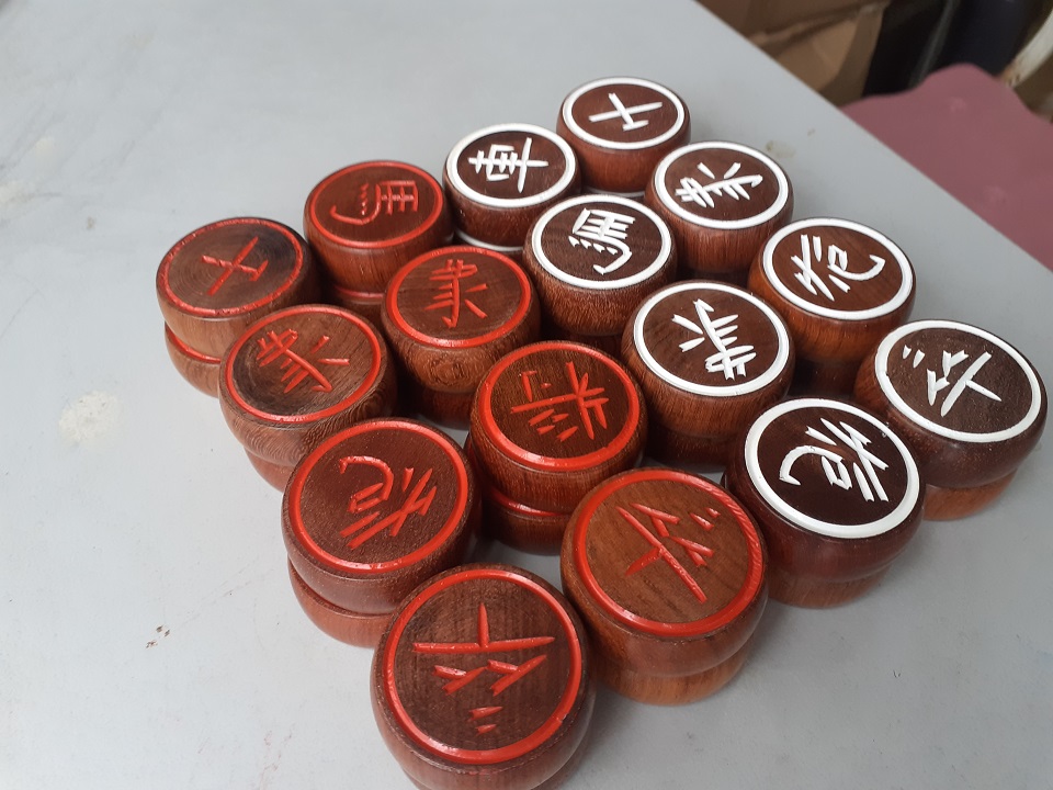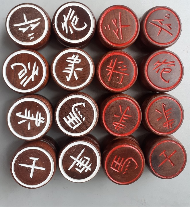 mặt quân cờ tướng gỗ trắc được trạm khắc quân bằng máy lase, khắc một mặt có thể chơi được cờ úp rất đẹp