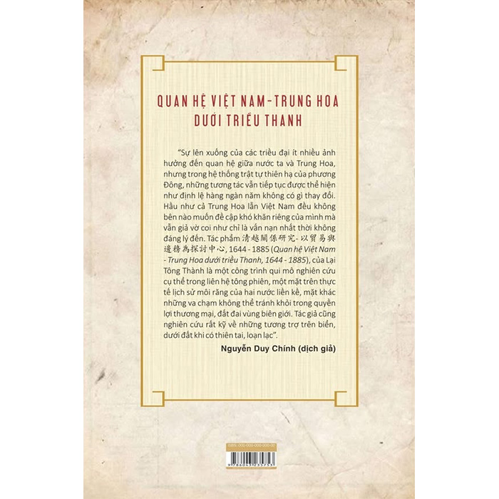 QUAN HỆ VIỆT NAM - TRUNG HOA DƯỚI TRIỀU THANH Tác giả: Lại Tông Thành Dịch và giới thiệu: Nguyễn Duy Chính Giao thiệp giữa Việt Nam và Trung Hoa dưới triều Thanh là một