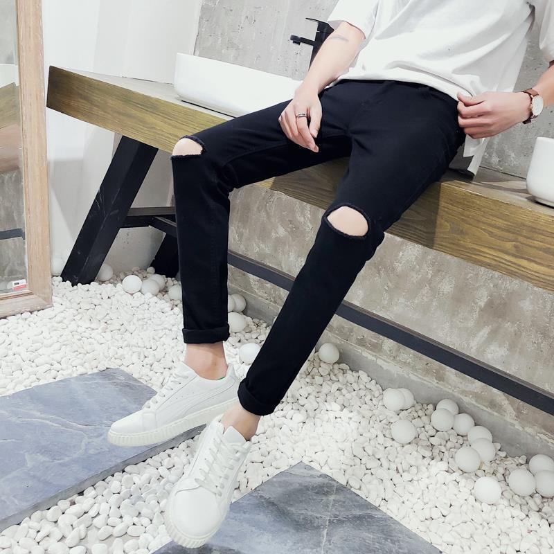Thiết kế Jean đen rách gối cao cấp phong cách đường may tỉ mỉ. Quần thiết kế form vừa vặn giúp tôn được đường nét phong cách của các tính đồ yêu phong cách đường