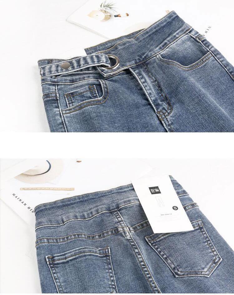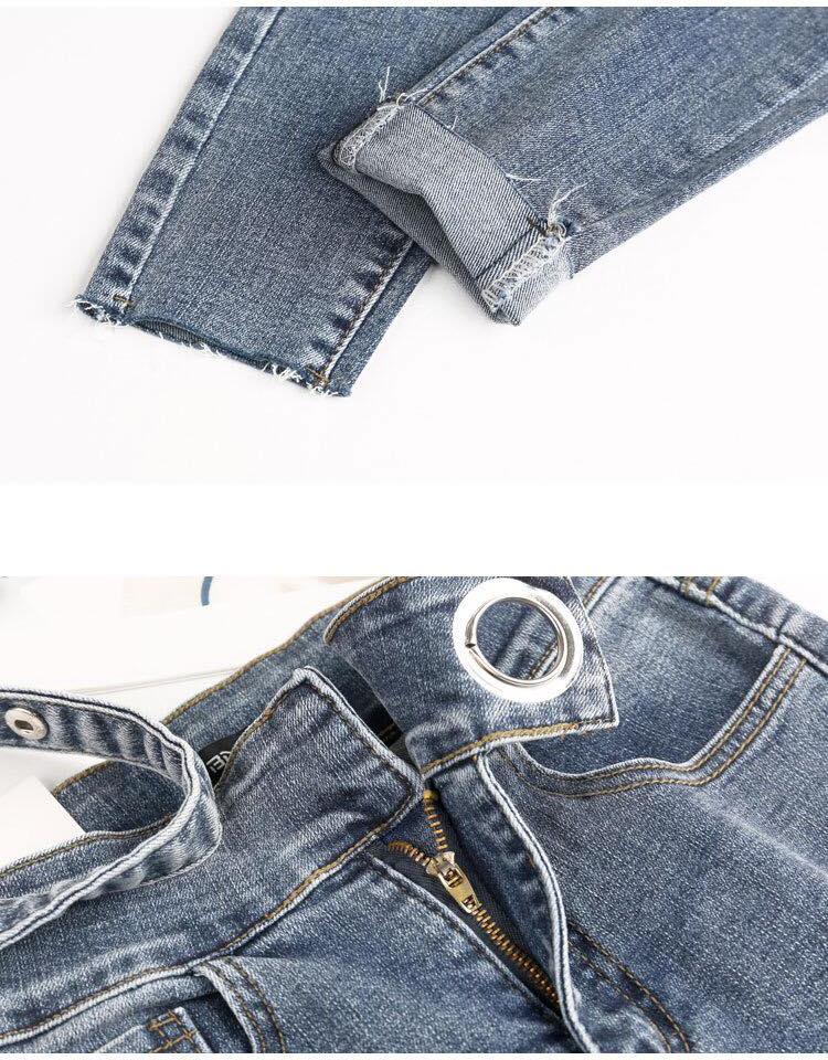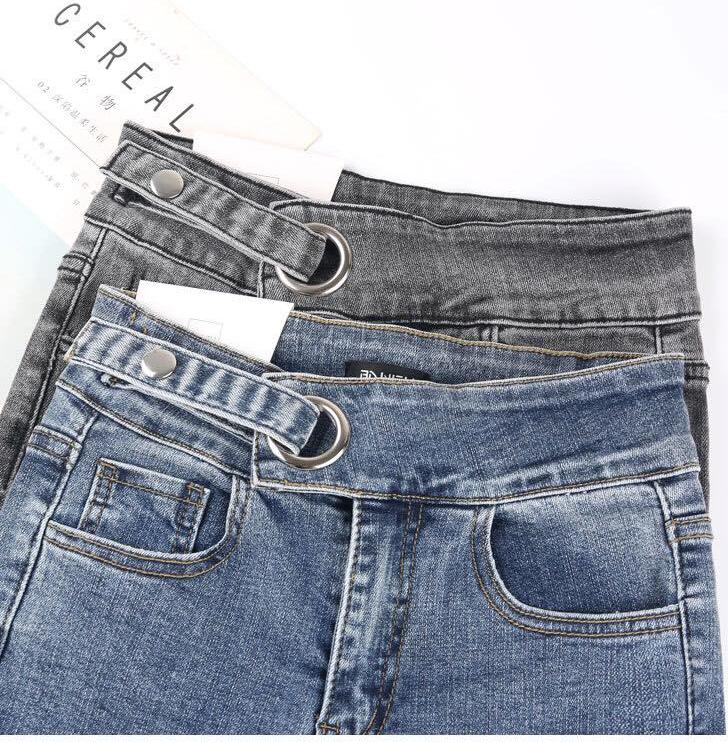✨Quần jeans màu xám khói nữ co giãn bó sát chín tất bé gái