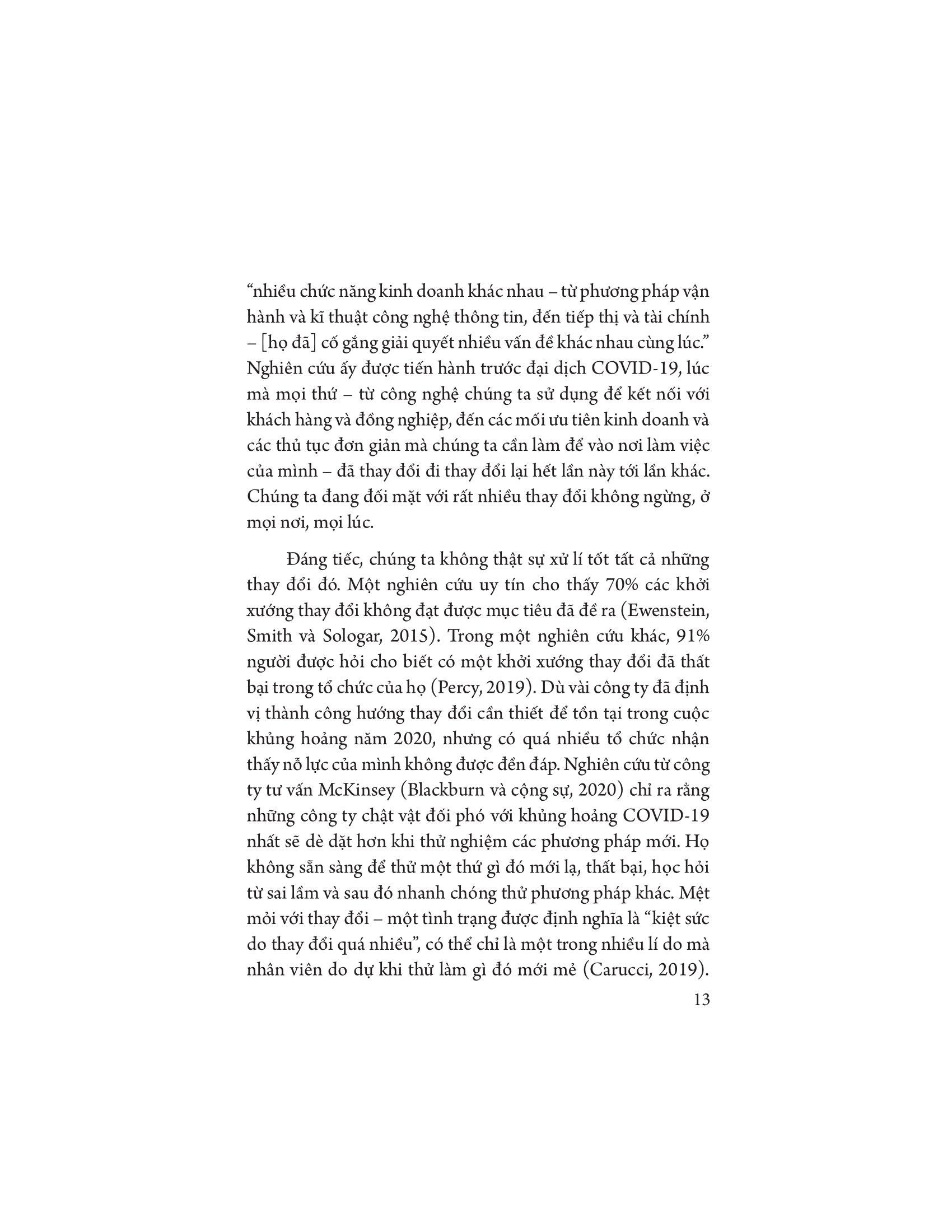 Trong công việc, và có khi cả trong đời sống cá nhân, chúng ta đều nghe người khác nói rằng chỉ có sự thay đổi là bất biến. Chúng ta đang sống trong một thế giới thiên biến vô cùng, được đặc trưng bởi sự biến động, không thể lường trước. Song rất nhiều lần, những nỗ lực thay đổi của chúng ta lại không đạt được mục tiêu mong muốn. Khách hàng rời đi, có khi còn nhiều hơn trước. Năng suất vẫn như cũ, thậm chí còn sụt giảm. Chúng ta cố gắng tìm hiểu chuyện gì đã xảy ra, m.ình đã bỏ qua điều gì, và chúng ta được bảo rằng kết quả không như mong muốn cũng là chuyện thường tình. Đôi khi những thay đổi ấy có hiệu quả, đôi khi lại không.