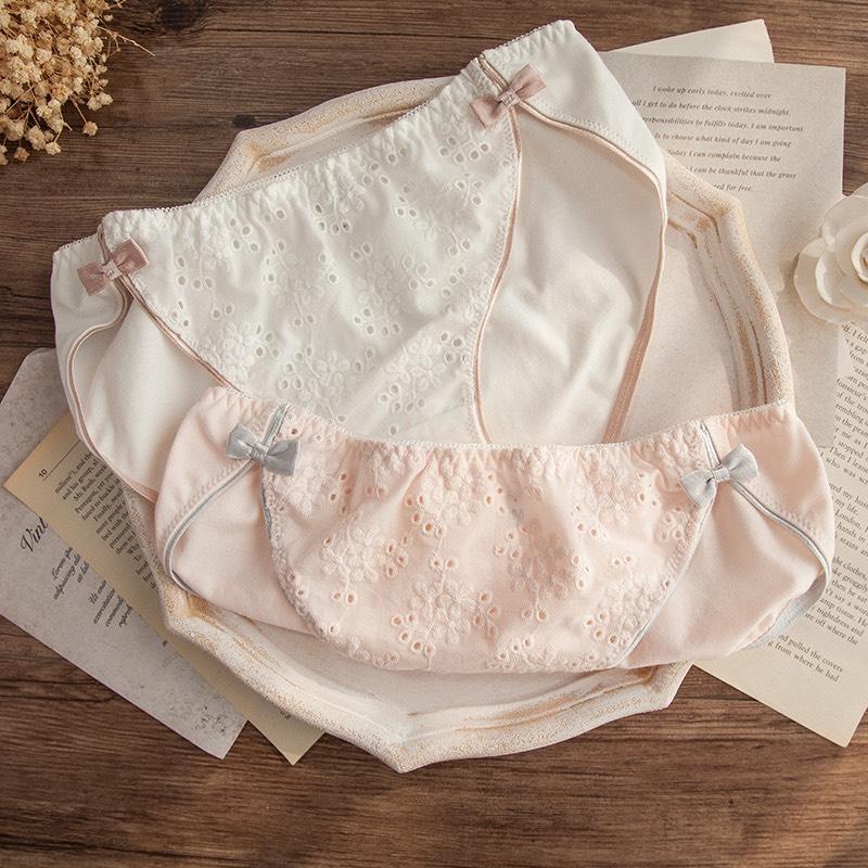 Quần Lót Cotton Retro Eo Giữa Hoạ Tiết Thêu Tinh Tế Hàng Cao Cấp (WL82) ông tin sản phẩm Quần lót Retro Cotton Cao cấp Mặt trước được thêu hoạ tiết rỗng đơn giản nhưng