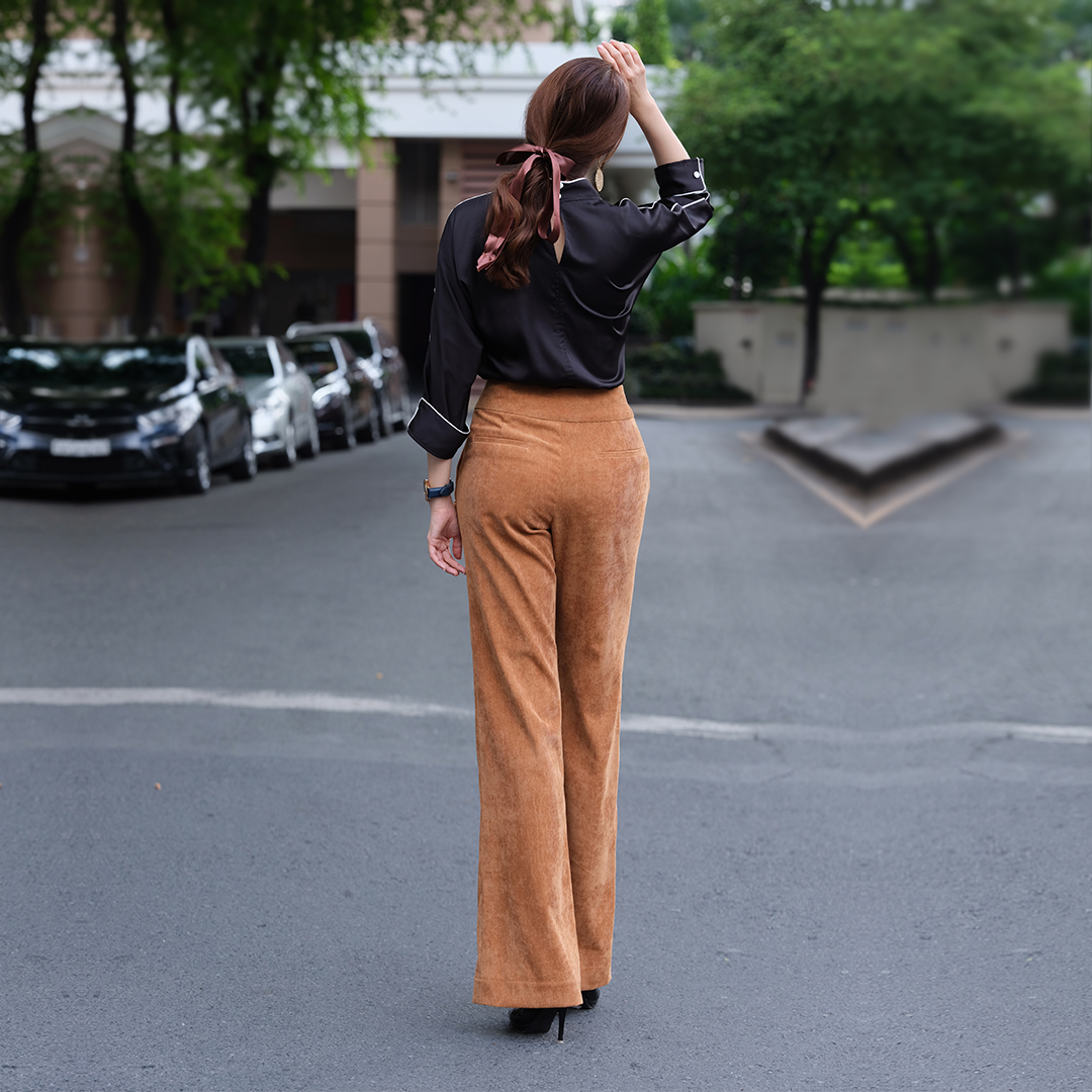 MÔ TẢ Một thoáng hoài cổ trong thiết kế quần ống suông Jazz. Thiết kế ống hơi loe giúp tôn lên vóc dáng của người mặc, lưng cao tạo vòng eo thon, chân trông thẳng và dài hơn, mang đến vẻ đẹp thanh lịch, sang trọng. Kiểu dáng quần ống suông loe bass nhẹ Lưng liền, cao ngay vòng eo 2 túi 2 bên, miệng túi giả phía sau Cài phía sau bằng dây khoá kéo CHẤT LIỆU Polyester Nghệ nhân cắt may: Bảo Yến, Bích Hoà Cắt may thủ công tinh tế tại Hity Atelier, Nha Trang, Việt Nam Người mẫu Phan Duyên cao 165cm, vòng ngực 88cm vòng eo 65cm vòng mông 95cm - người mẫu