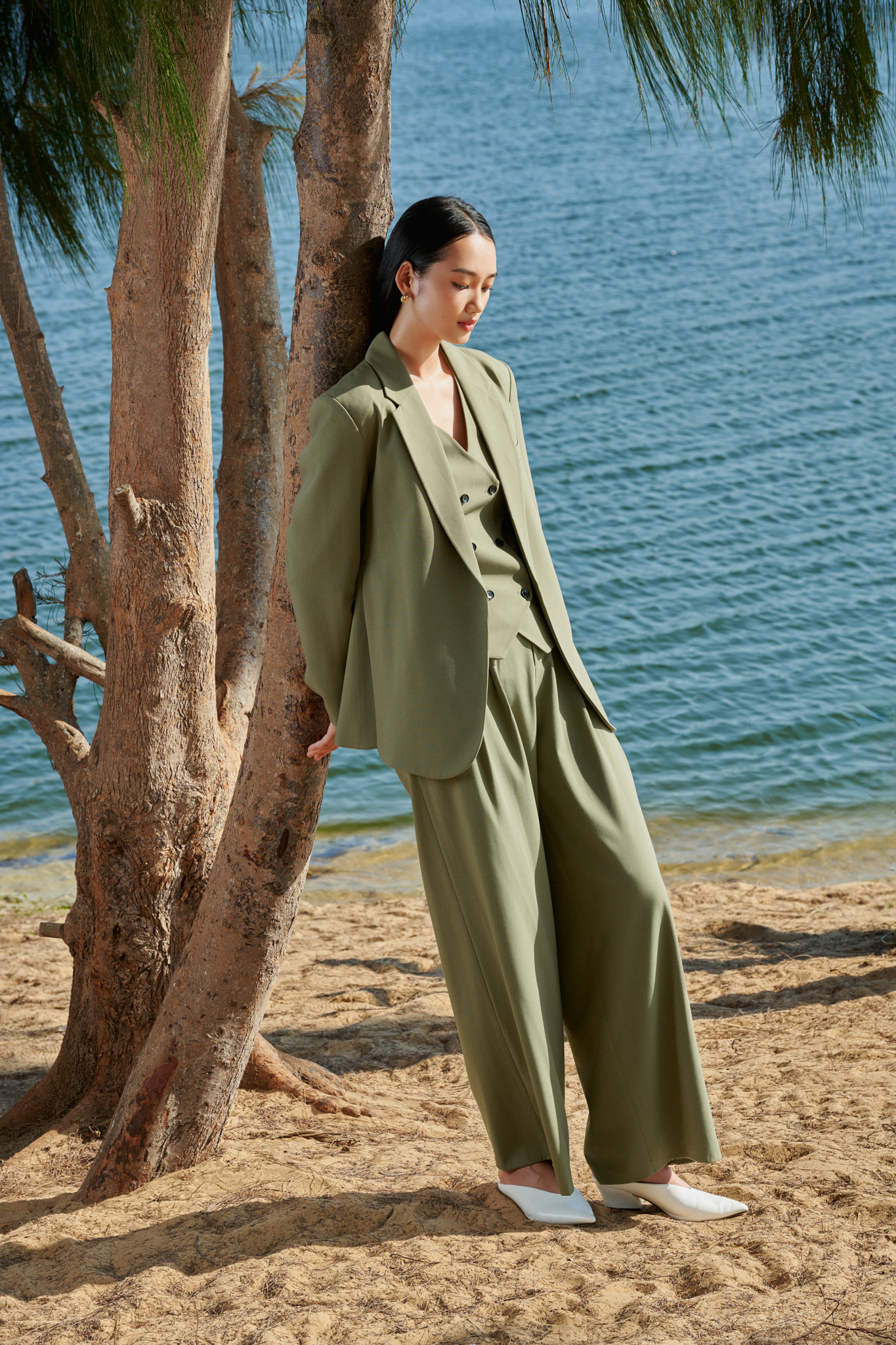1. Thông tin sản phẩm: VALEN ELOISE - PHONG CÁCH THỜI TRANG CHỈN CHU VÀ CHUYÊN NGHIỆP Áo gile Valen form ôm, phối cùng quần Eloise ống suông cạp cao xếp ly giúp che