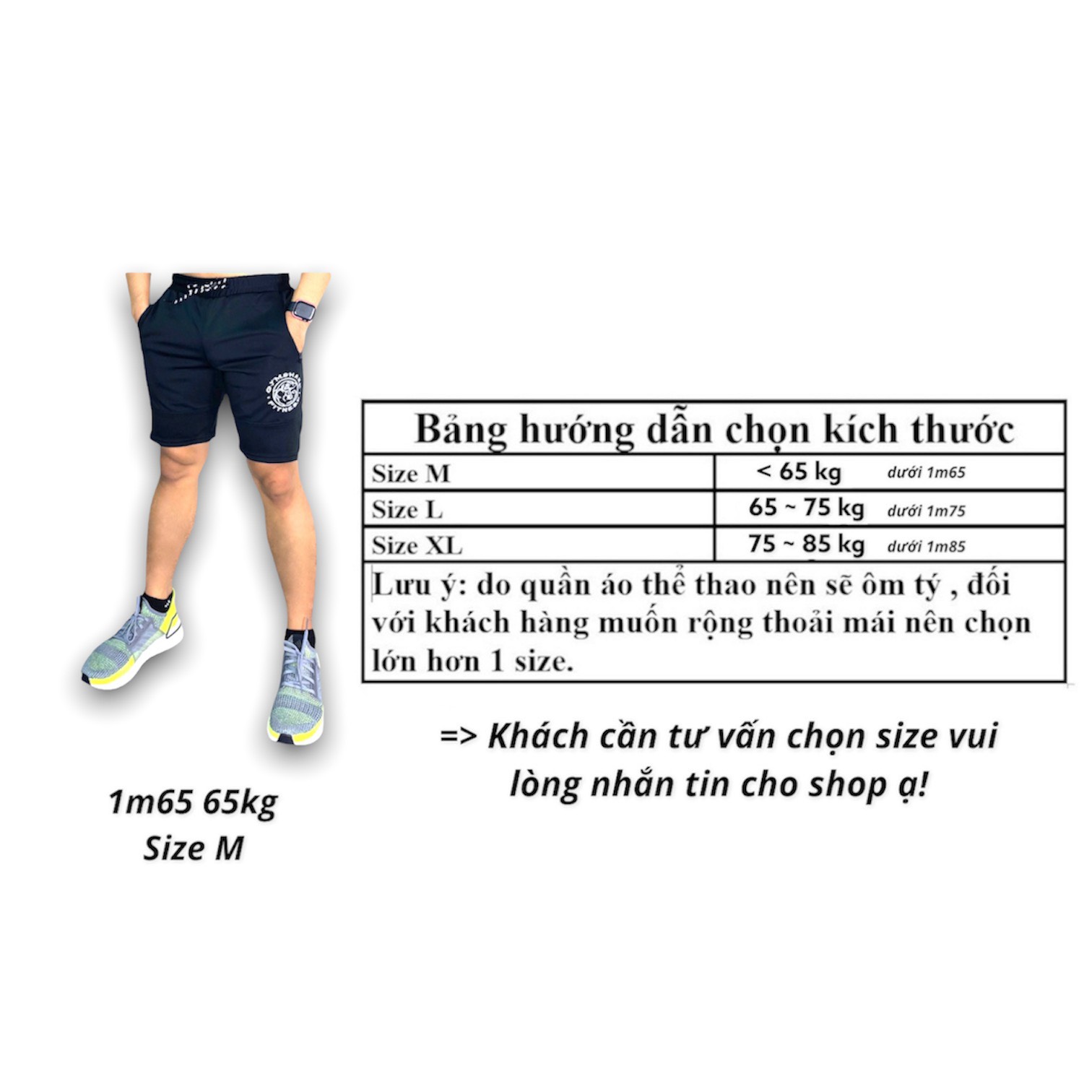 - Size: M: 50 - 64 kg L: 65 - 75 kg XL: 76 - 85kg => Khách cần tư vấn size vui lòng inbox. Lưu ý khi chọn quần thun nam thể thao DOGYMSHOP