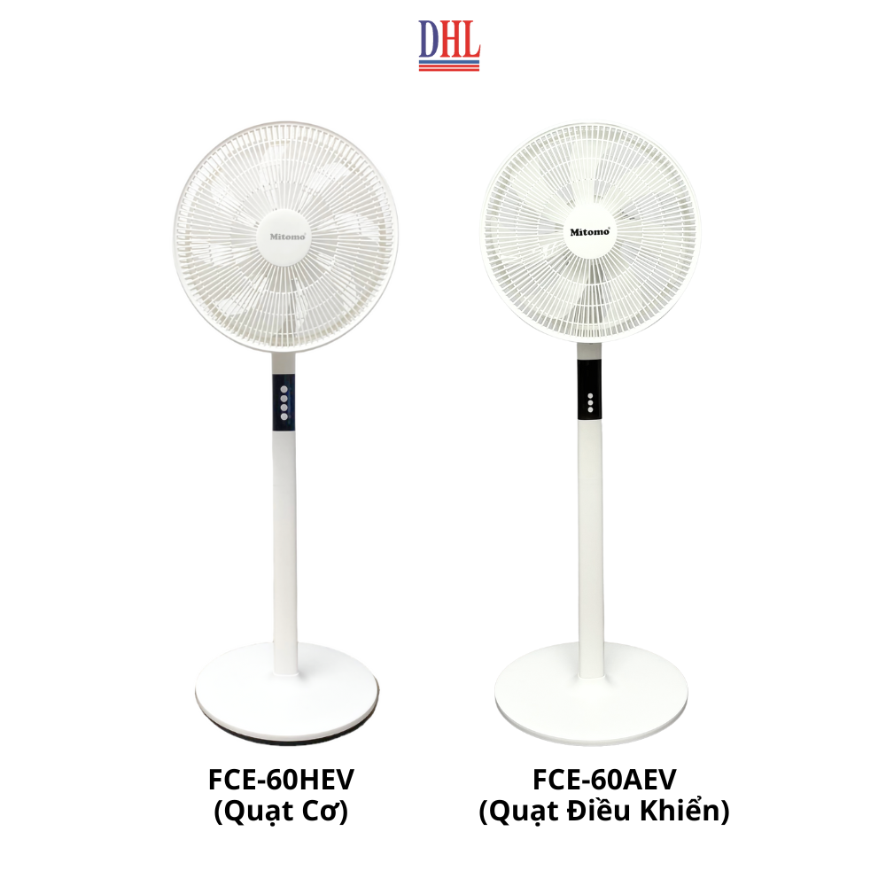 - Model FCE-60HEV ( Quạt cơ thân vuông: Phím cơ, không có điều khiễn, không có hẹn giờ ) Quạt đứng Mitomo FCE- 60AEV/HEV được thiết kế đơn giản, hiện đại với tông màu trắng chủ đạo. Thân quạt và lòng quạt được thiết kế từ nhựa ABS mang lại vẻ sang trọng và chắc chắn. Quạt có điều khiển từ xa, tích hợp chức năng hẹn giờ tiện dụng. Ba cấp độ gió cùng tính năng xoay đa hướng giúp gió phủ rộng và đều hơn. Tính năng nổi bật của quạt đứng Mitomo FCE-60HEV chính hãng