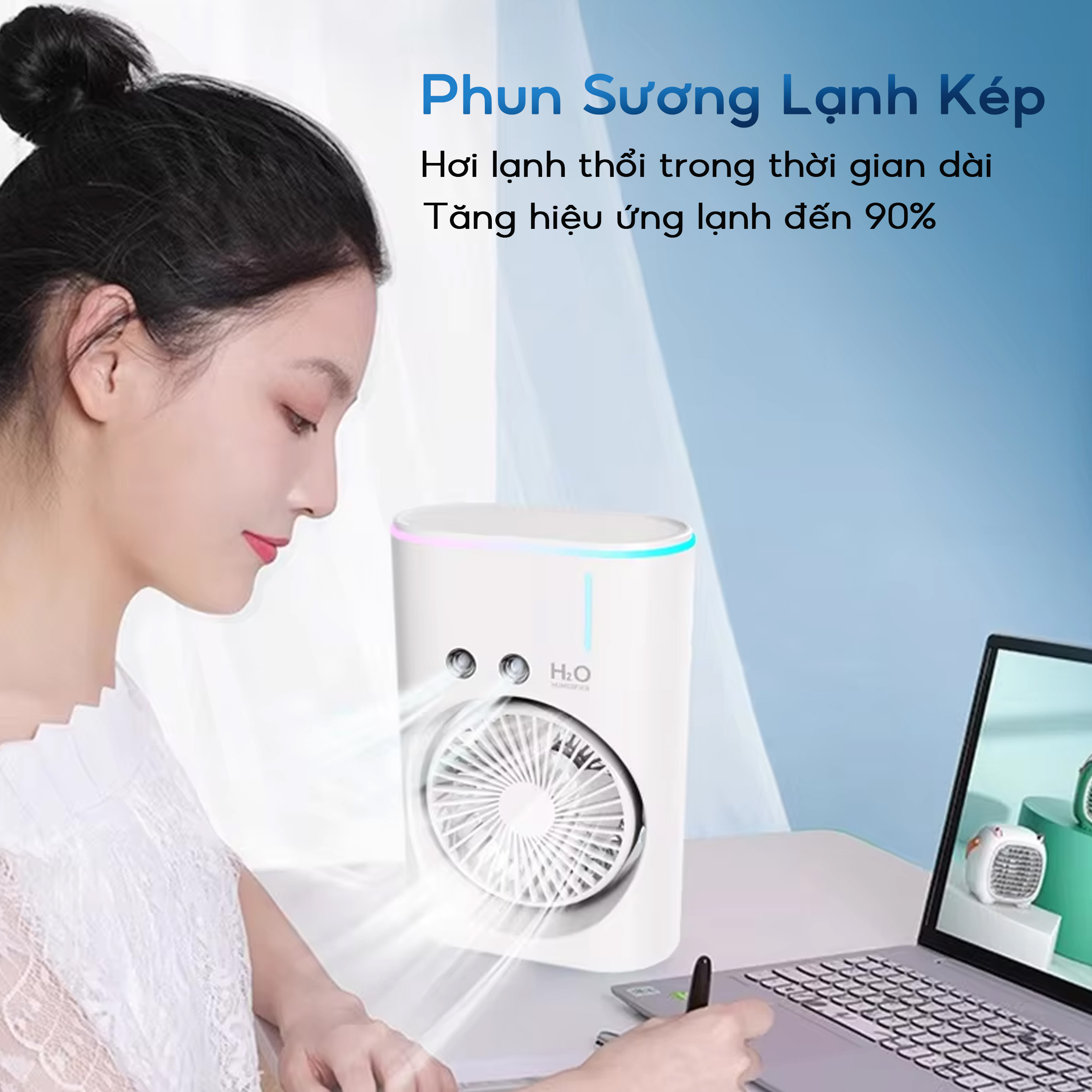 Quạt phun sương Youpin AQUA BREEZE, 2 lồng quạt, có đèn LED, xoay tốc năng 90° làm mát rộng, pin dung lượng lớn Quạt hơi nước để bàn Youpin. Tận hưởng cảm giác mát mẻ,