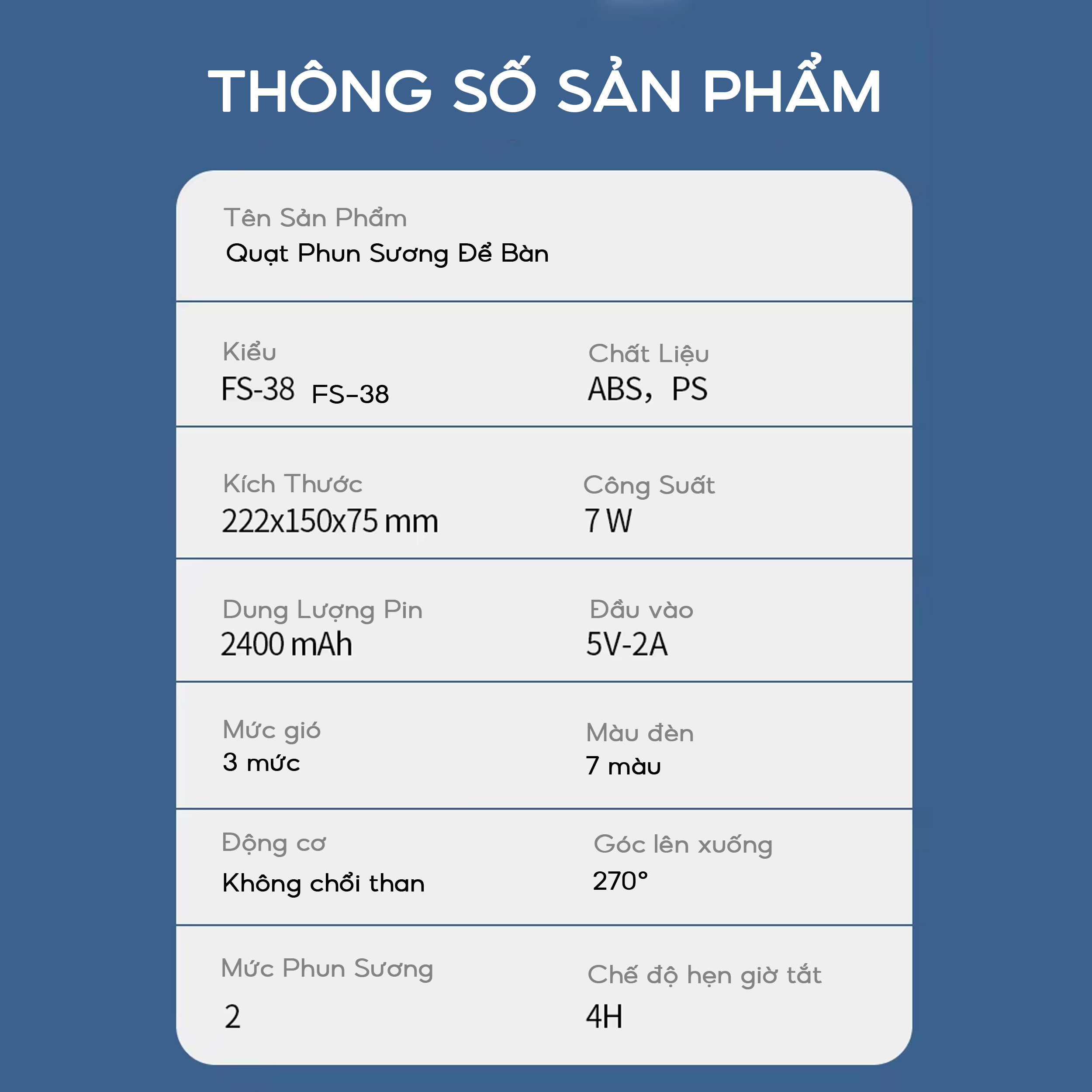 QUẠT PHUN SƯƠNG ĐỂ BÀN 5 BEC PHUN SƯƠNG SIZE LỚN - HÀNG CHÍNH HÃNG THÔNG SỐ KỸ THUẬT – Chất liệu vỏ: Nhựa ABS + PC cao cấp + Linh kiện điện tử –