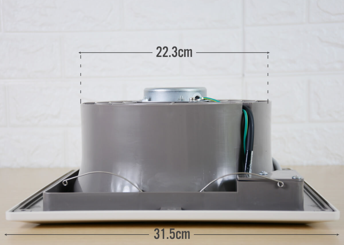 Quạt hút gió Panasonic có thiết kế dạng hình vuông, lắp âm trần với kích thước lỗ khoét là 270mm x 270mm. Sản phẩm có gam màu trắng nên phù hợp với mọi không gian sử dụng.