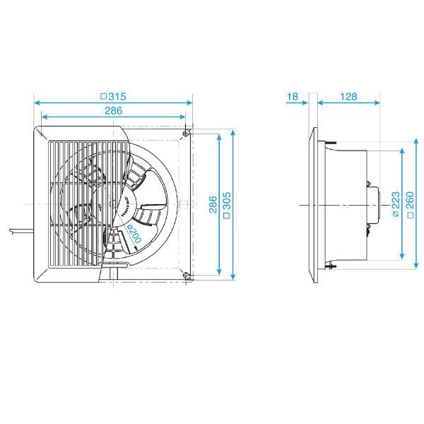 QUẠT THÔNG GIÓ ÂM TƯỜNG JY-B9004&JY-B9005 Model: JY-B9005 >> Thông số kỹ thuật - Quạt thông gió âm tường JY-B9005 - Lưu lượng gió: 160m3/Hr - Công suất mô tơ: 28W - Kích thước