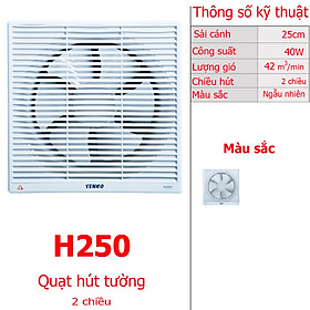 Công suất 40W, sải cánh 20cm_x000D_ Mặt trước quạt có lưới che an toàn_x000D_ Hai chiều tiện dụng vừa hút vừa thổi - Quạt Hút Thông Gió Senko H250 40W là giải pháp đơn giản mà