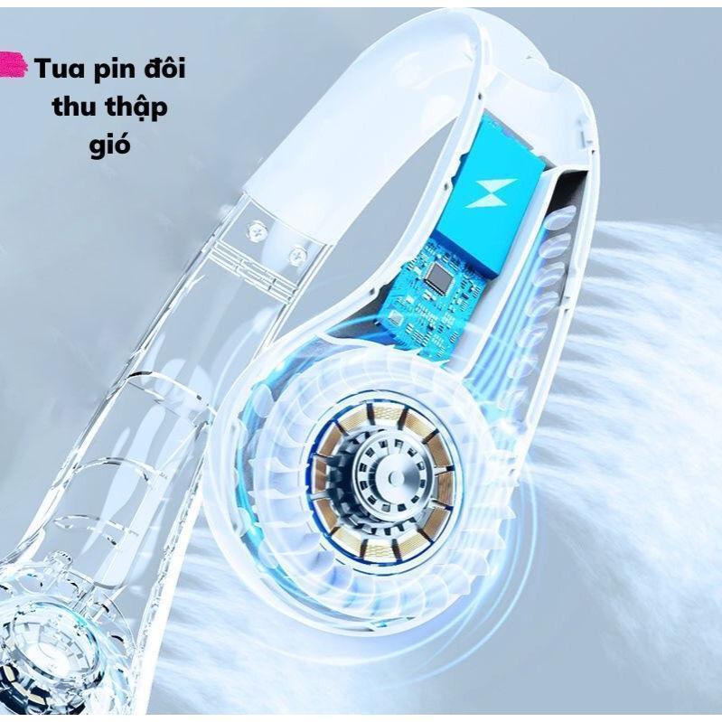 Quạt Đeo Cổ Mini Không Cánh Tích Điện Thông Minh, 3 Cấp Độ Gió Mạnh, Dung Lượng Pin Lớn