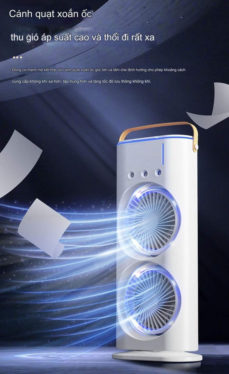 Quạt phun sương Youpin AQUA BREEZE, 2 lồng quạt, có đèn LED, xoay tốc năng 90° làm mát rộng, pin dung lượng lớn