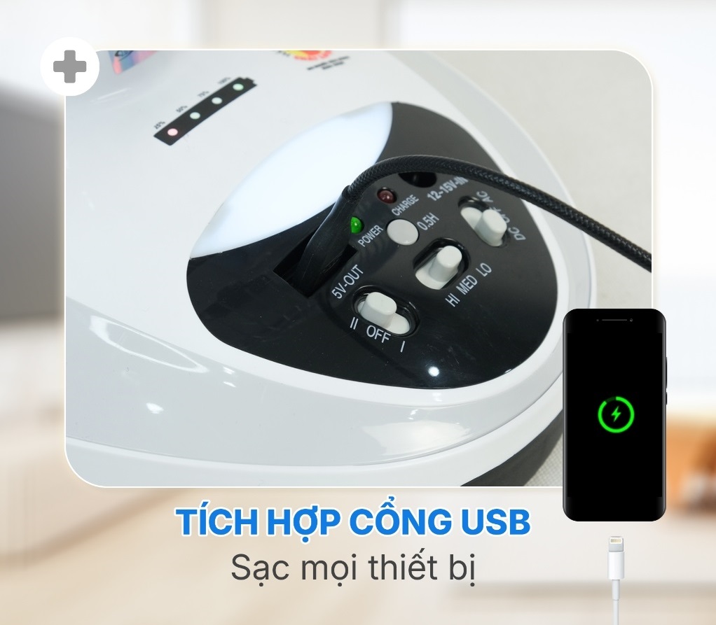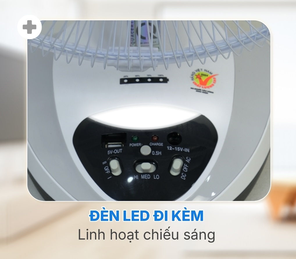 • Nên cắm sạc trước và sau khi sử dụng để tối ưu thời gian sử dụng quạt.