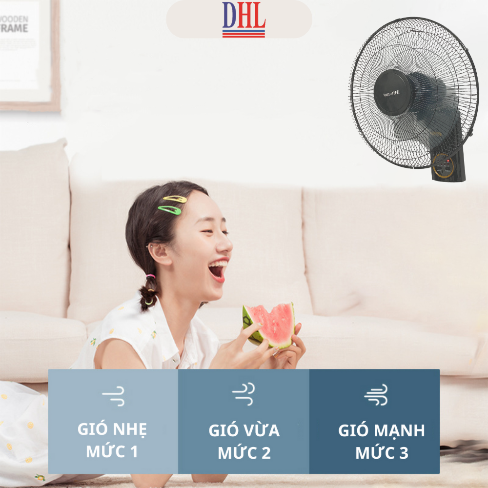 có kiểu dáng hiện đại, thiết kế treo tường tiết kiệm diện tích Lồng quạt đan khít rất an toàn cho người dùng, chất liệu cao cấp ít bám bụi, dễ 3 cánh quạt