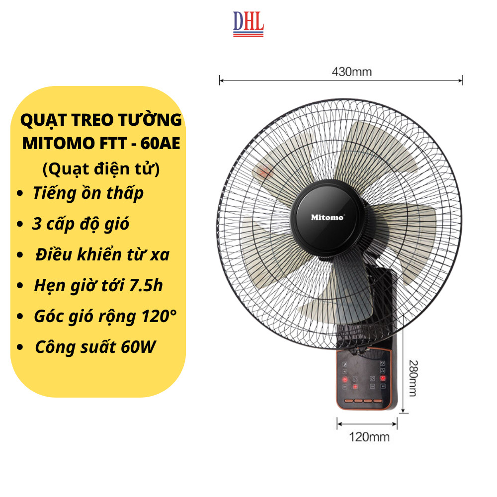 QUẠT TREO TƯỜNG MITOMO FTT-60AE - HÀNG CAO CẤP, BẢO HÀNH CHÍNH HÃNG 2 NĂM