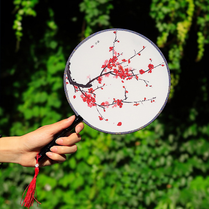 ✨Quạt tròn cổ trang hoa mai đỏ loại nhỏ đường kính 21cm