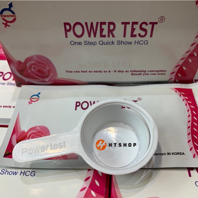 Tên sản phẩm: Que thử thai PowerTest   Kích thước test: rộng 5mm Tính năng: Phát hiện thai sớm sau 6 -9 ngày trứng rụng ƯU ĐIỂM: Phát hiện thai sớm sau 6 -9 ngày