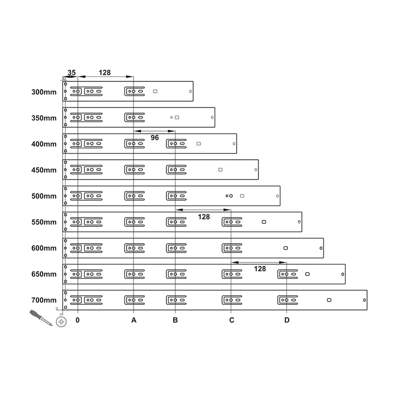✨Ray trượt, ray bi 3 tầng giảm chấn Hafele 450mm - 494.02.064