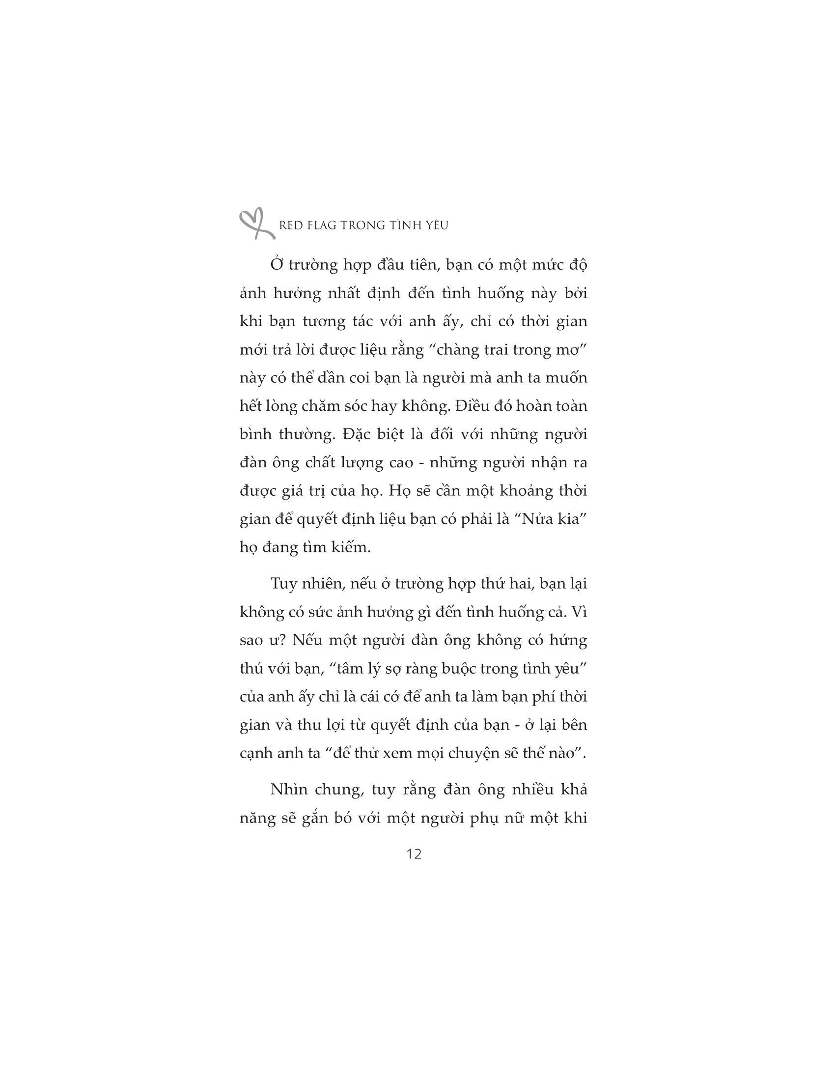 Và cuốn sách “Red Flag trong tình yêu” sẽ giúp bạn sẽ có cái nhìn sâu sắc hơn về cách một người đàn ông suy nghĩ và tương tác với một người phụ nữ khi anh ta không thực sự quan tâm đến cô ấy. Vớicuốn sách này, bạn sẽ biết được: