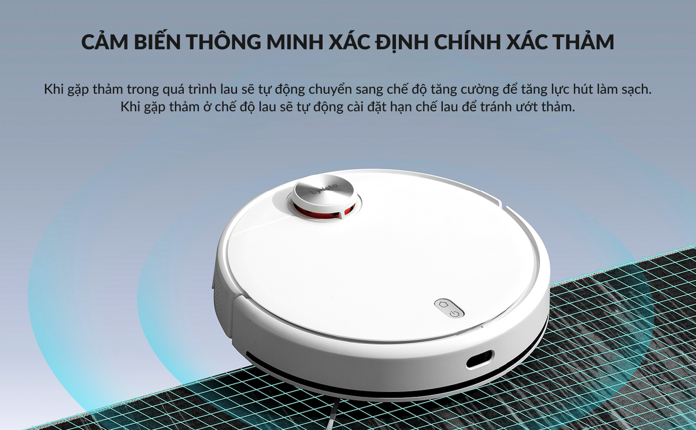 Tích hợp công nghệ Quét laser 3D định vị hệ thống hiển thị bản đồ toàn bộ ngôi nhà. Chốt quét: 2 chiếc Tự động quay về dock sạc, leo dốc 3cm. Thời gian sạc
