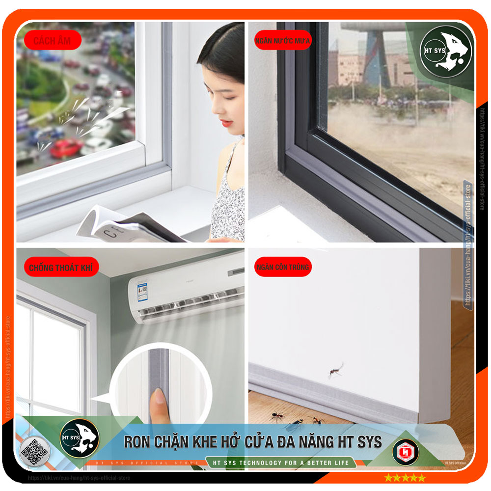 Ron chặn khe cửa HT SYS - Chất liệu PU và PE cao cấp - Ron chặn khe cửa, chân cửa, khung cửa - Ngăn gió lùa, cách âm, chống bụi, ngăn côn trùng, chống thoát khí điều hòa, chống va đập cửa - Hàng chính hãng