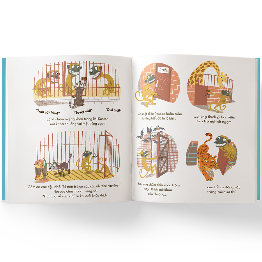 Mua tại TiktokHầu hết các động vật đều mong được thoát ra khỏi sở thú. Nhưng Roscoe thì quyết tâm đi vào sở thú. Cá tươi ngon, rau trái sáng bóng và chín mọng, và quan trọng nhất là giờ cho ăn đều đặn - một con thú nhỏ đói khát còn mong muốn gì hơn thế nữa? À, có thể mong nhân viên vườn thú sẽ không quá quyết tâm trong việc đá mấy con gấu mèo phiền hà ra khỏi sở thú! Những sự hỗn loạn nối tiếp nhau trong câu chuyện khôi hài và “ngon miệng” về một chú gấu mèo lém lỉnh của tác giả/họa sĩ David J.Plant.